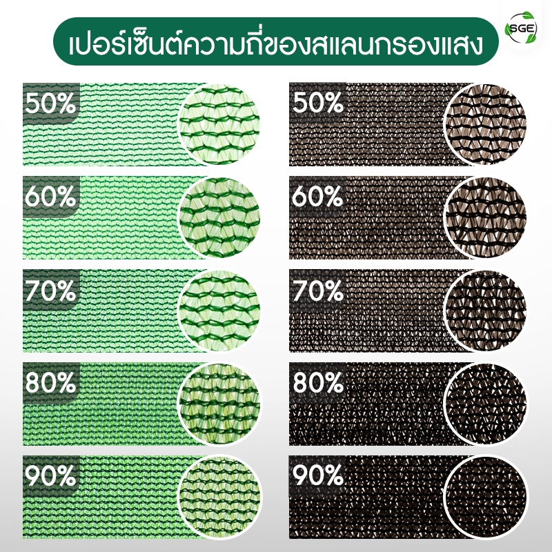 SGE สแลนกันแดด รุ่น SN 50-90% สีดำ หน้ากว้าง 2 เมตร เหนียว ทนทาน ส่งไว (แบ่งขายเป็นเมตร)