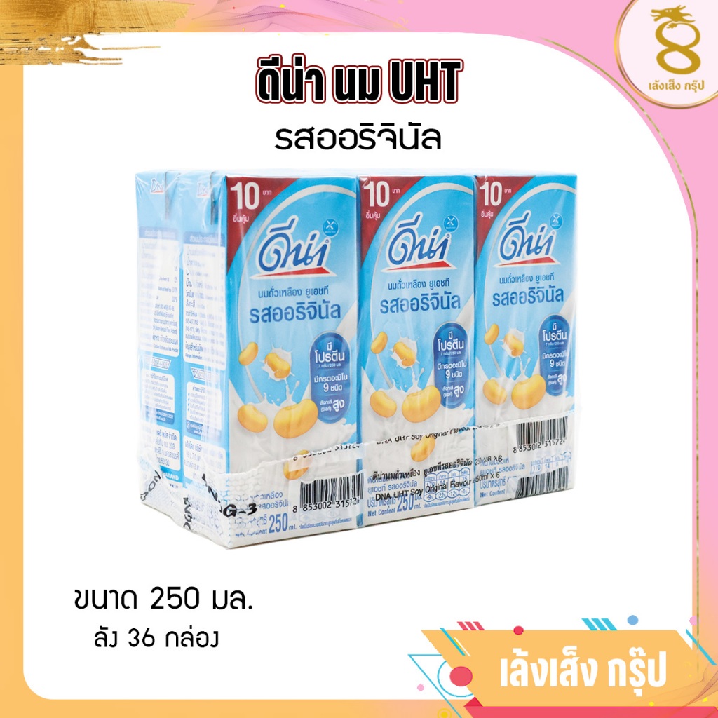 ดีน่า นมถั่วเหลืองยูเอชที ออริจินัล 250 มล ลัง 36 กล่อง