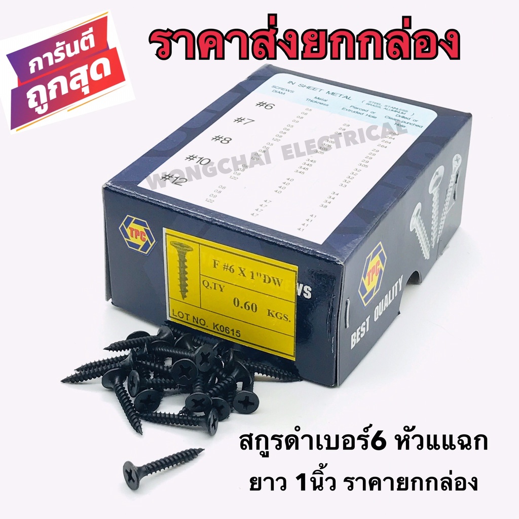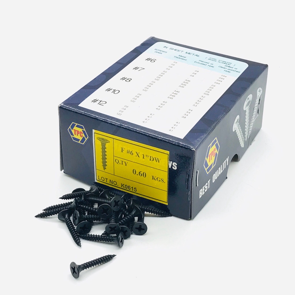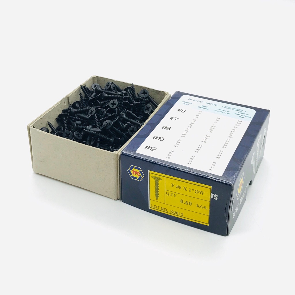 สกรูดำ สกรูยิงฝ้า เบอร์6 ยาว1 นิ้ว หัวแฉกแบน เกลียวปล่อย สีดำ ยิงแผ่นฝ้ายิปซั่ม ฝ้าฉาบเรียบ ซีลาย