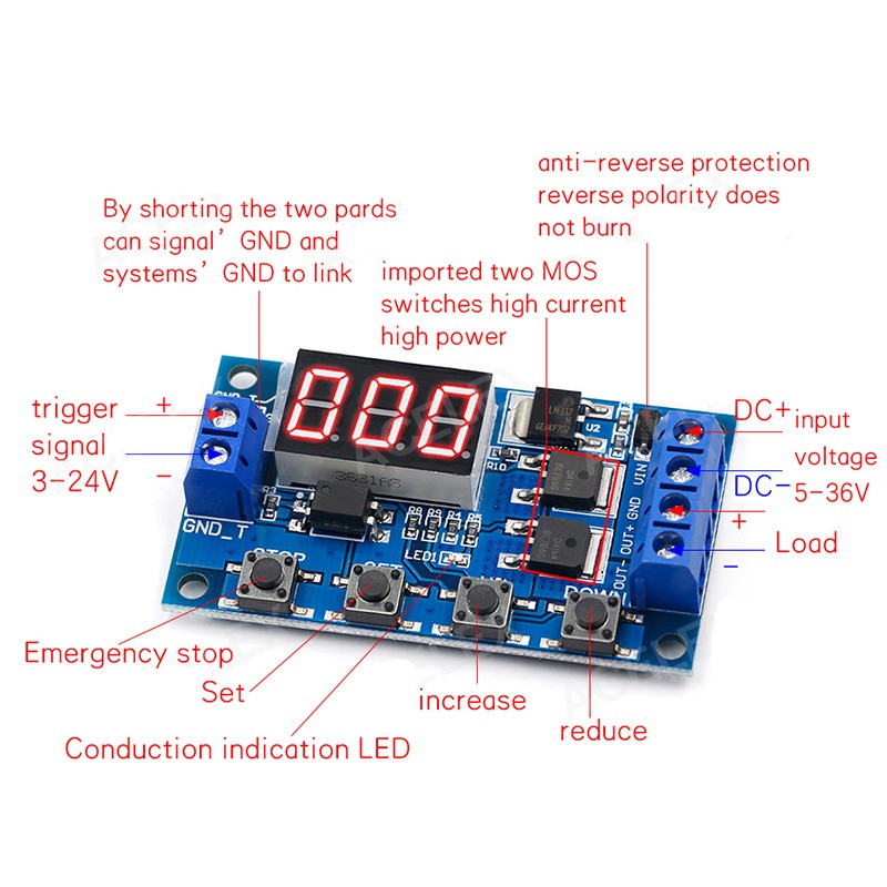 DC 12V 24V Dual MOS รีเลย์หน่วงเวลาแบบดิจิตอล Trigger Cycle Timer Delay Switch Board Timing Control Module