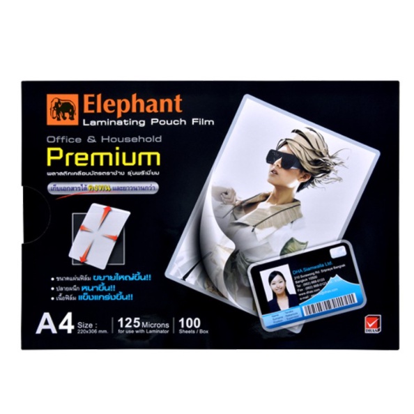 พลาสติกเคลือบบัตร ฟิล์มเคลือบบัตร ตราช้าง พรีเมี่ยม ขนาด A4 รุ่น PREMIUM หนา 125 ไมครอน