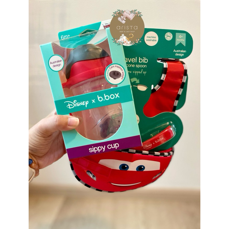 B.box x Disney Lightning McQueen sippy cup and travel bib + spoon bundle