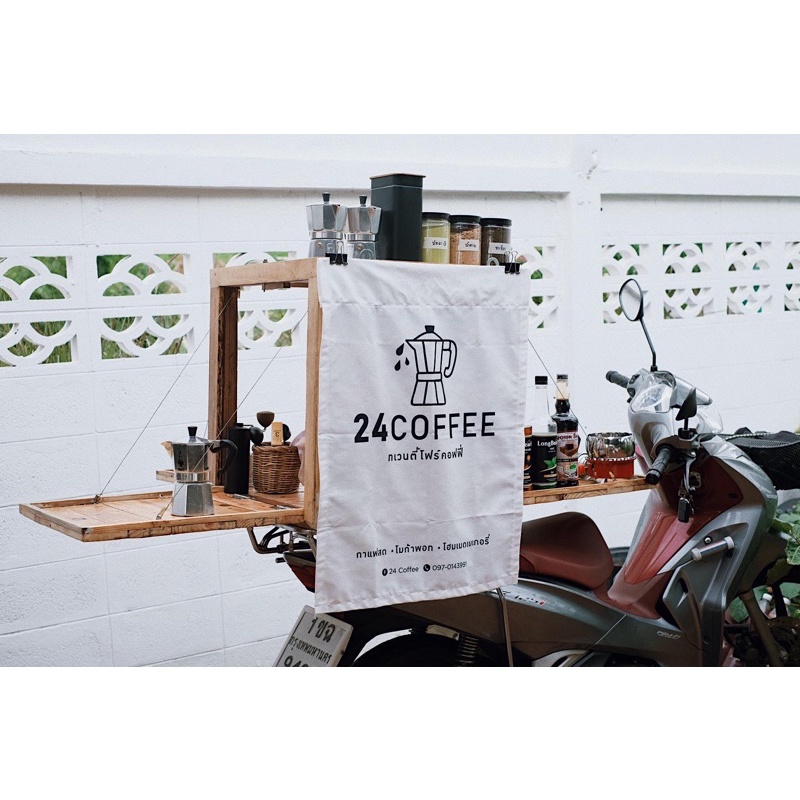 [เก็บโค้ดส่งฟรีหน้าร้าน] ป้ายชื่อร้าน ป้ายผ้าดิบ ร้านกาแฟ moka pot ป้ายผ้าดิบตกแต่งร้านกาแฟ ร้านคาเฟ่ ขนาด 54x70 cm.