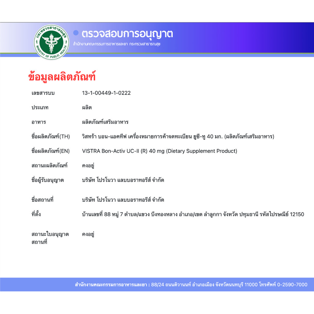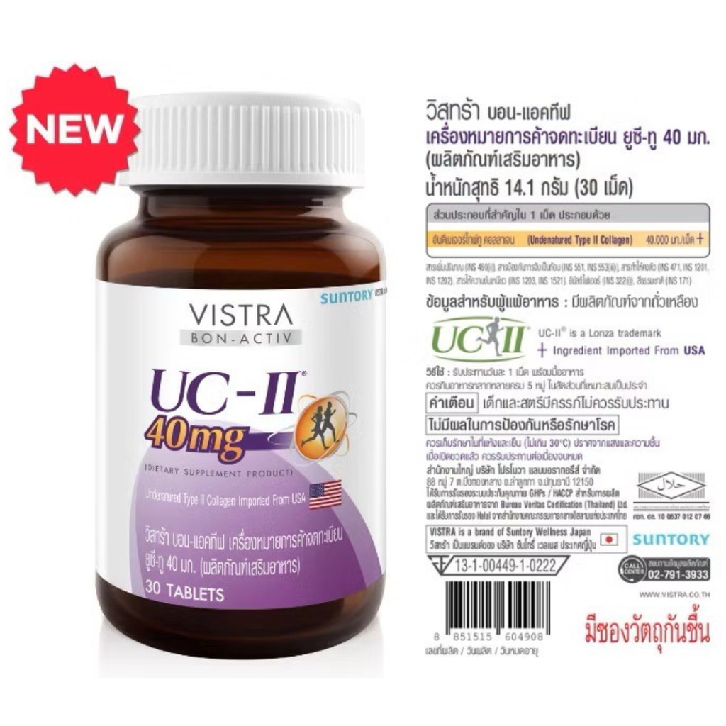 ( แพ็ค2 ขวด)VISTRA COLLAGEN TYPE II วิสทร้าคอลลาเจน ไทพ์ ทู (UC-II)(30 เม็ด) Lot.ใหม่ ฉลากแบบใหม่ [หมดอายุ 10/10/2028]PC