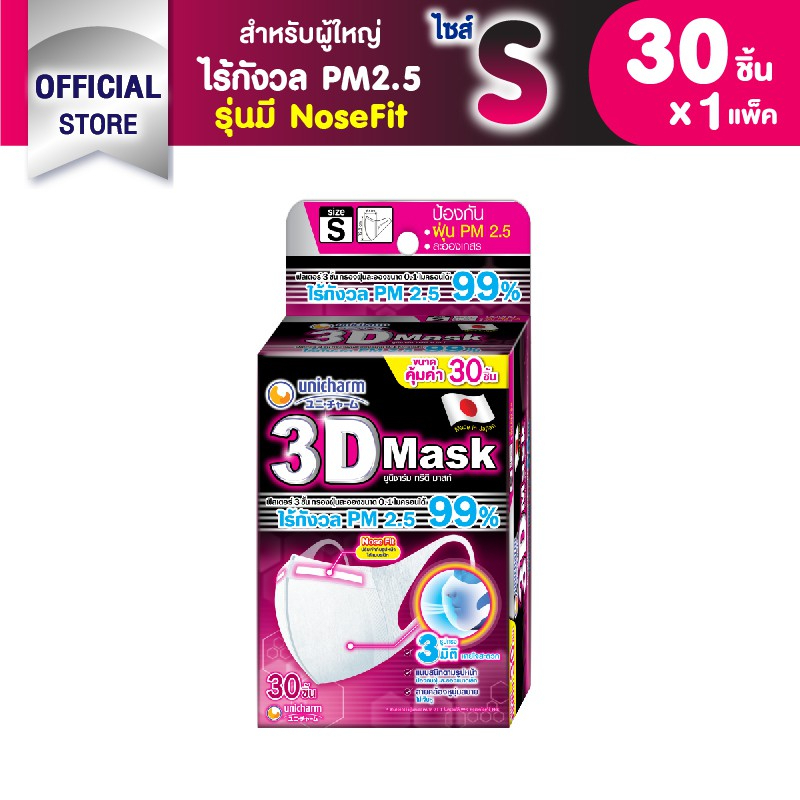 3D Mask ทรีดี มาสก์ หน้ากากอนามัยสำหรับผู้ใหญ่ ขนาด S จำนวน 30 ชิ้น