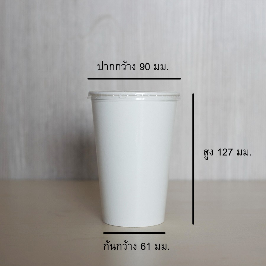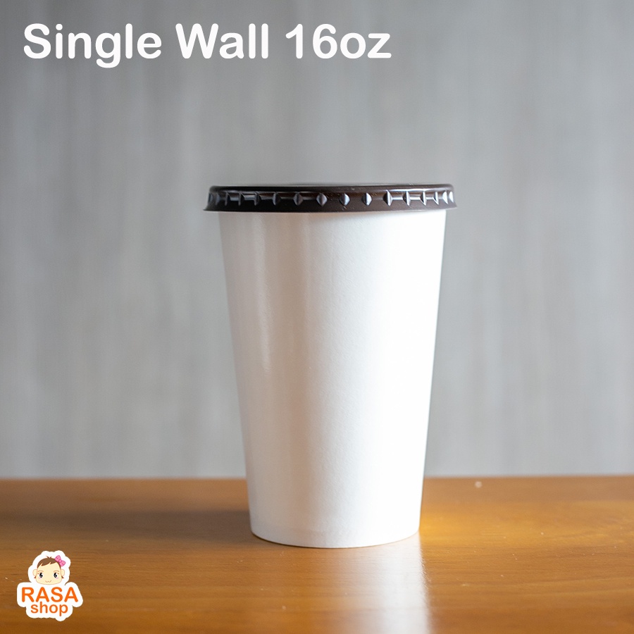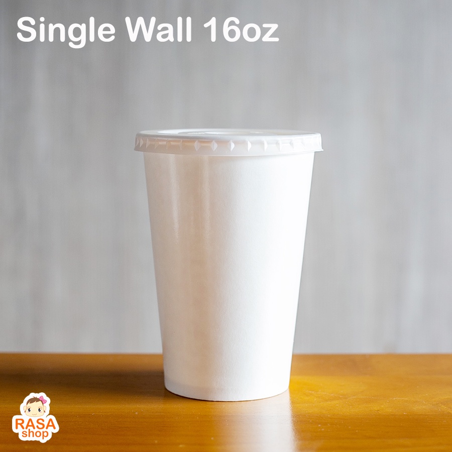 [SW16-0050] แก้วกระดาษชั้นเดียว สีขาว ขนาด 16 ออนซ์ มีตัวเลือกฝาเรียบด้านใน บรรจุ 50 ใบ