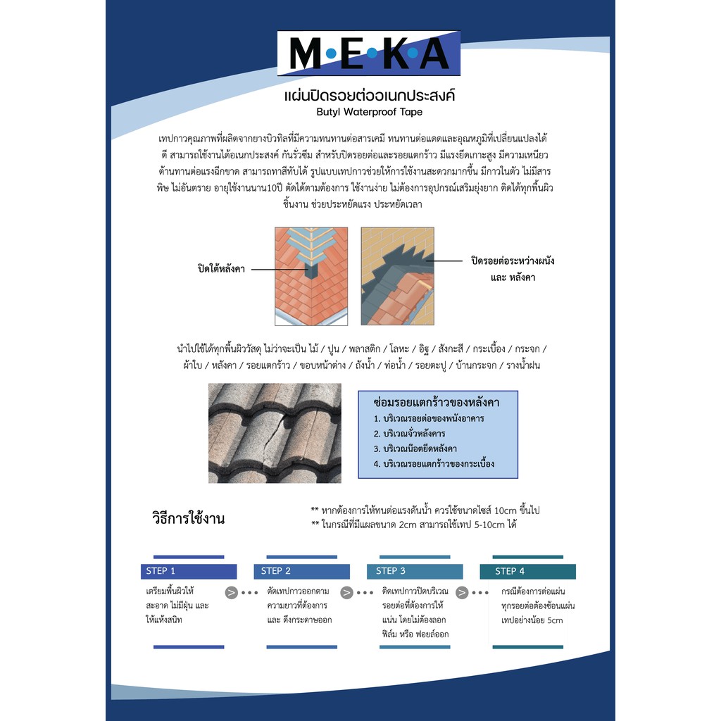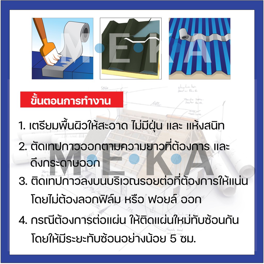 MEKA เทปกาวยางบิวทิล เทปกันซึม แผ่นปิดรอยต่อ กาวอุดรอยรั่ว ซ่อมหลังคารั่ว หนา1.5มม. x กว้าง10 ซม. x ยาว 3ม. สีดำ