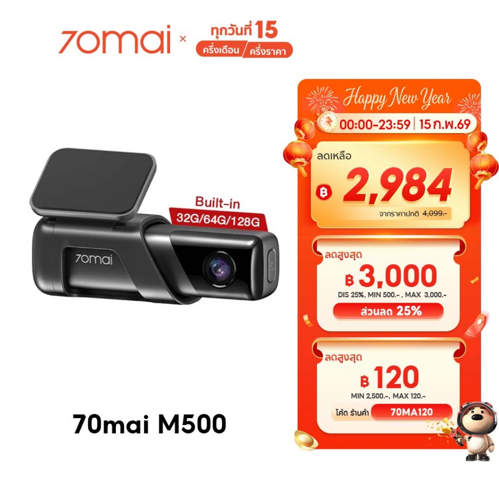 70mai M500 Dash Cam 3K 1944P ADAS กล้องติดรถยนต์ กล้องติดรถ ความละเอียดสูงพิเศษ กล้องรถยนต์ กล้องหน้ารถ มุมมองภาพ 170°
