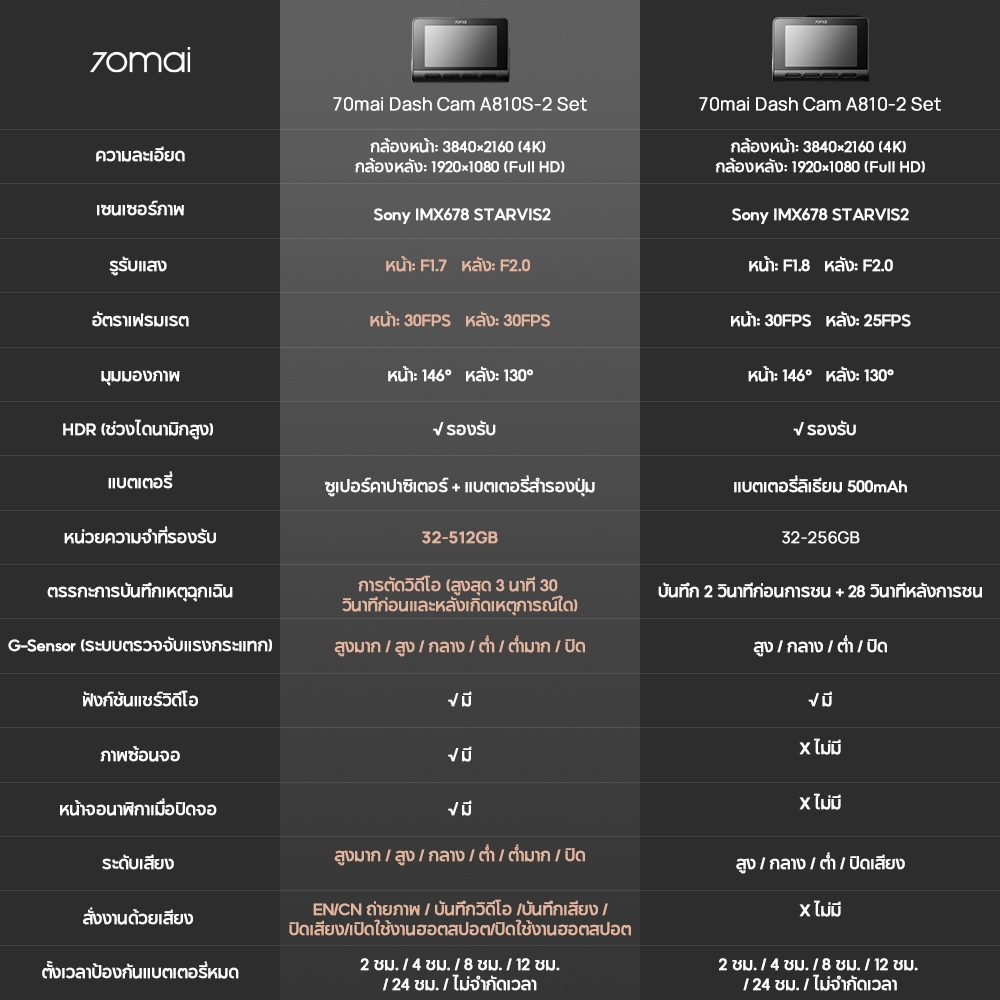 [รับของที่กาญจนาภิเษก]70mai A810S Dash Cam 4K Built-In GPS Full HD WDR 4G 70 Mai Car Camera กล้องติดรถยนต์ รับประกันศูนย