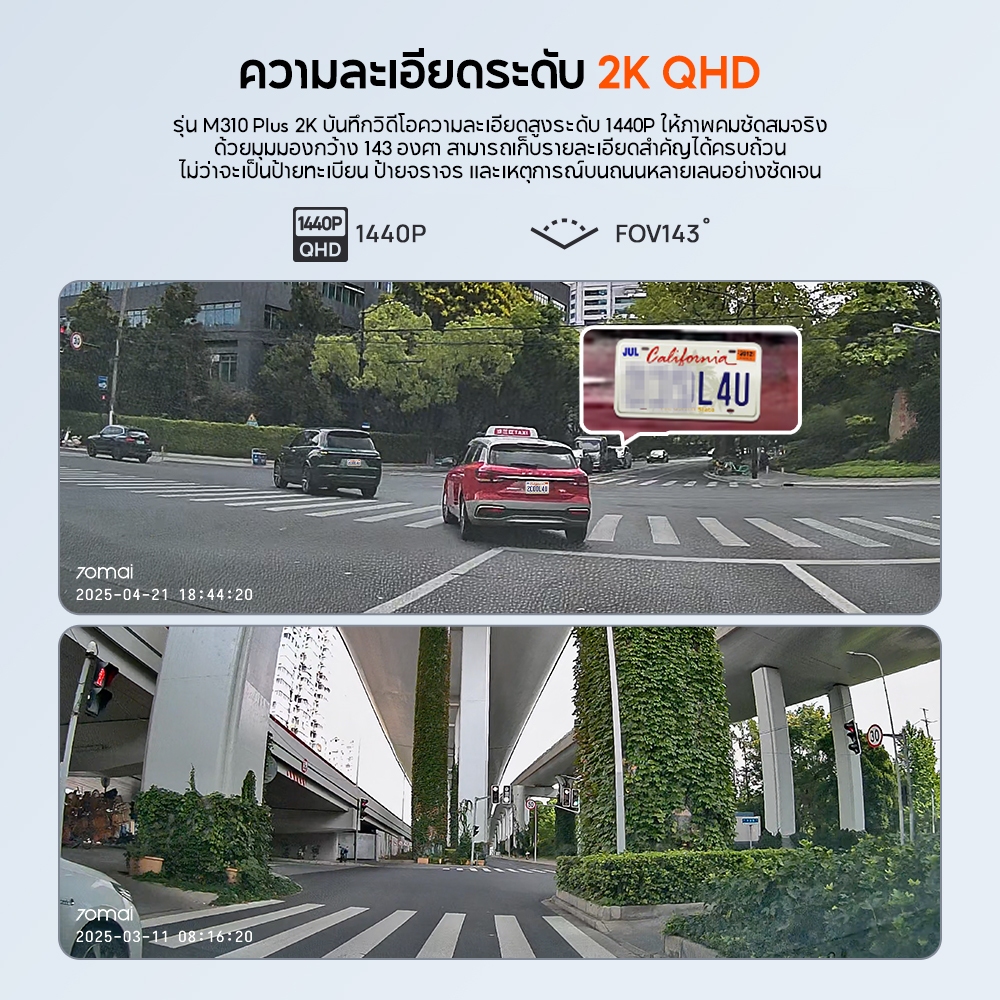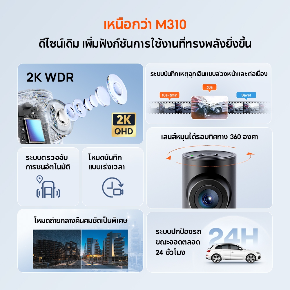 [2026 NEW] 70mai Dash Cam M310 Plus 2K Car Camera กล้องติดรถยนต์อัจฉริยะ ความละเอียด 2K F1.55 เลนส์หมุน360 องศา