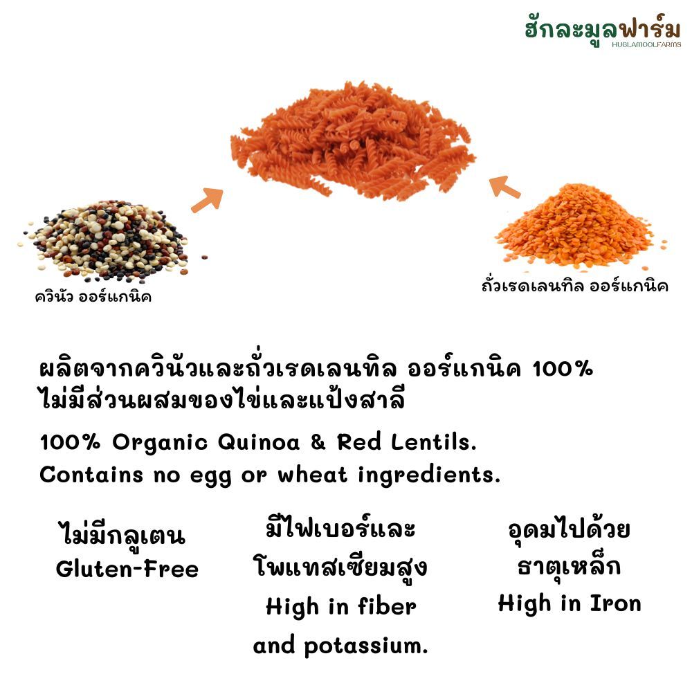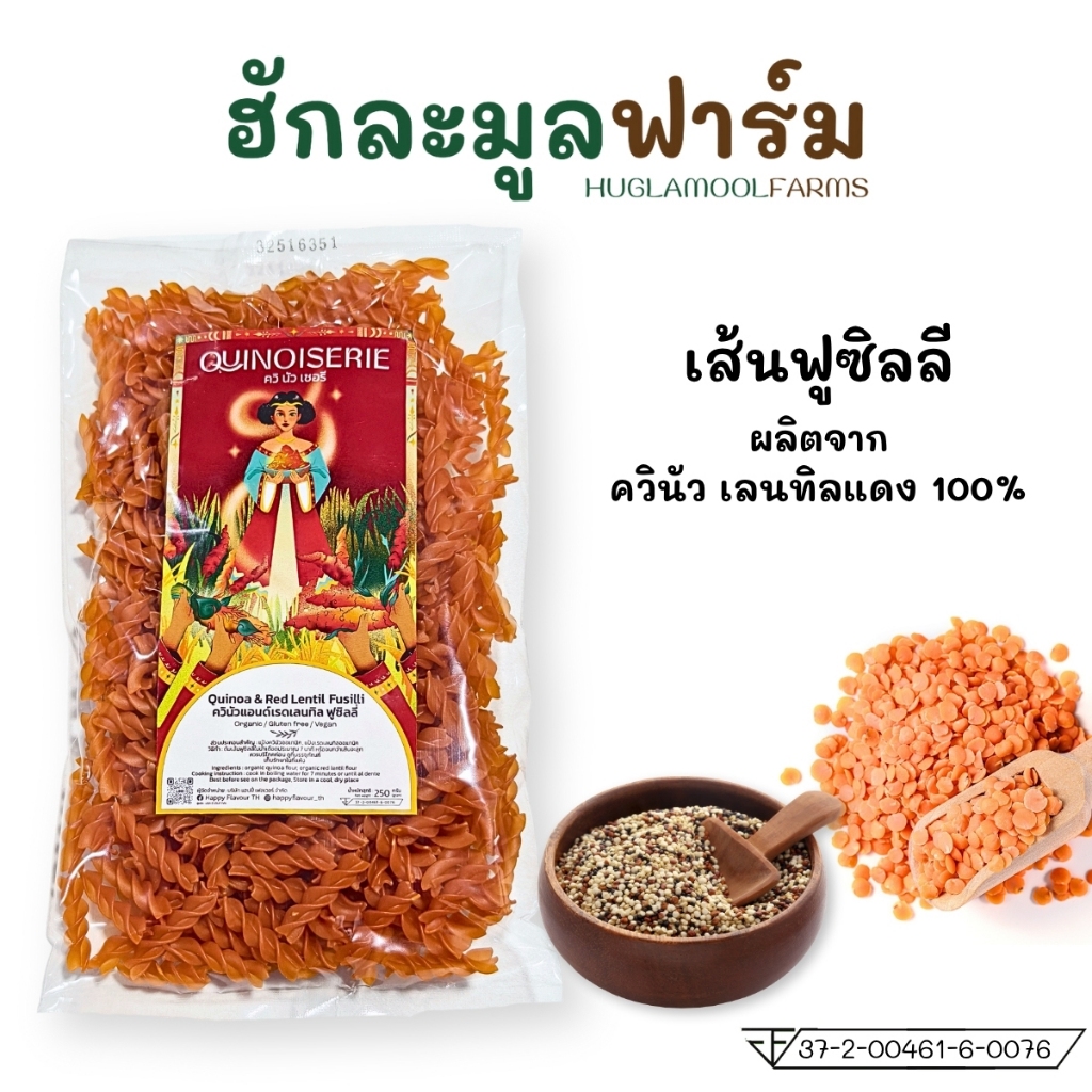 QUINOISERIE เส้นพาสต้า ฟูซิลลี่ 250กรัม จากควินัวถั่วเรดเลนทิลออร์แกนิค Organic Quinoa & Red Lentil Fusilli