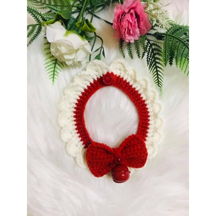 ปลอกคอแมว สุนัข ปลอกคอไหมพรม สุดน่ารัก