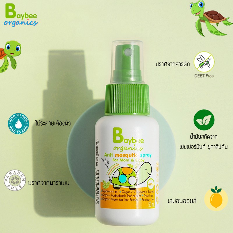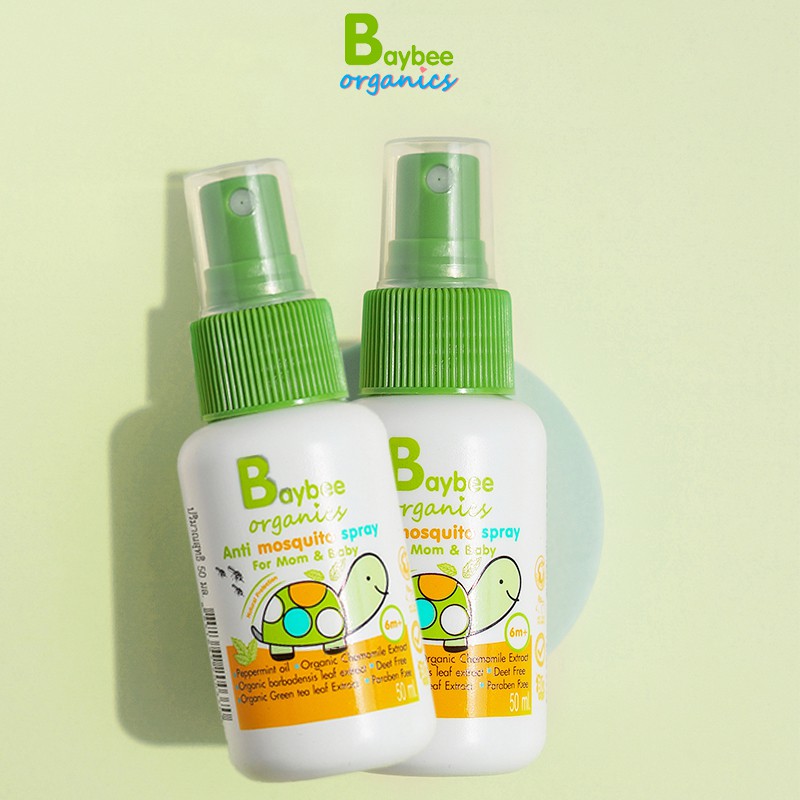 BAYBEE สเปรย์กันยุงสำหรับเด็กออร์แกนิค กลิ่นเปปเปอร์มินต์ 50ml.ปราศจากสารดีทปกป้องนาน3ชั่วโมง(2ชิ้น)