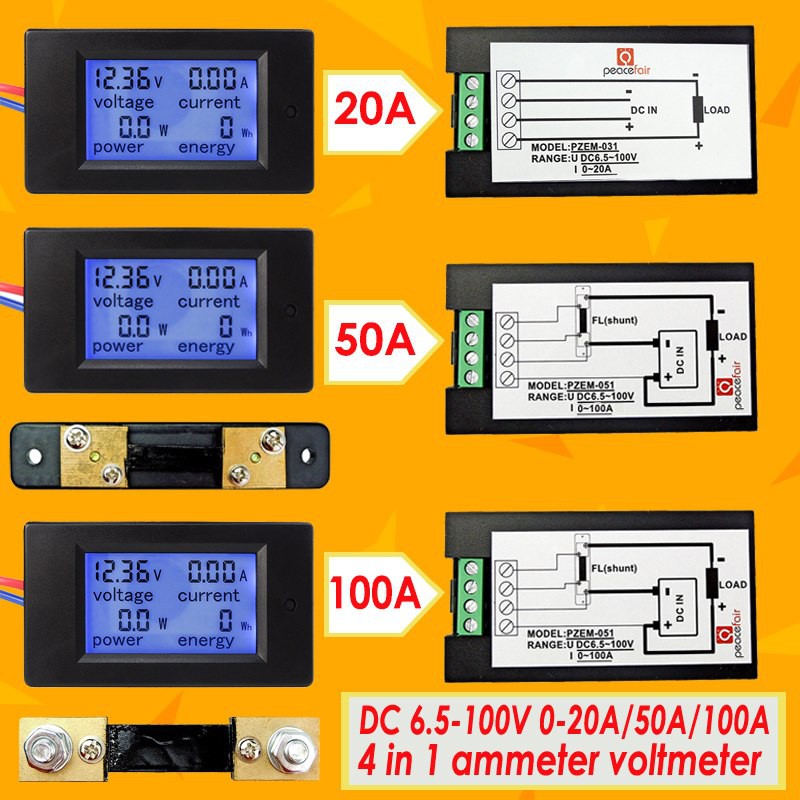 มิเตอร์ วัดไฟ DC PZEM 051 / PZEM 031 DC 0-100A 4 in 1 กระแสตรง 6.5-100V DC Watt meter Volt, Current, Watt, Energy