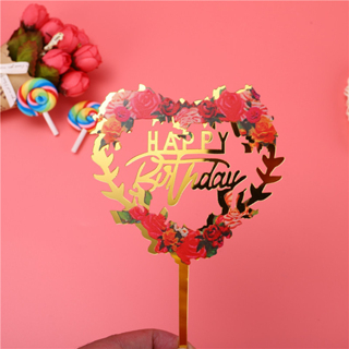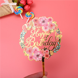 A456 ป้ายปักเค้ก ป้ายปักเค้กFloral พิมพ์ลายดอกไม้ พร้อมส่งในไทย