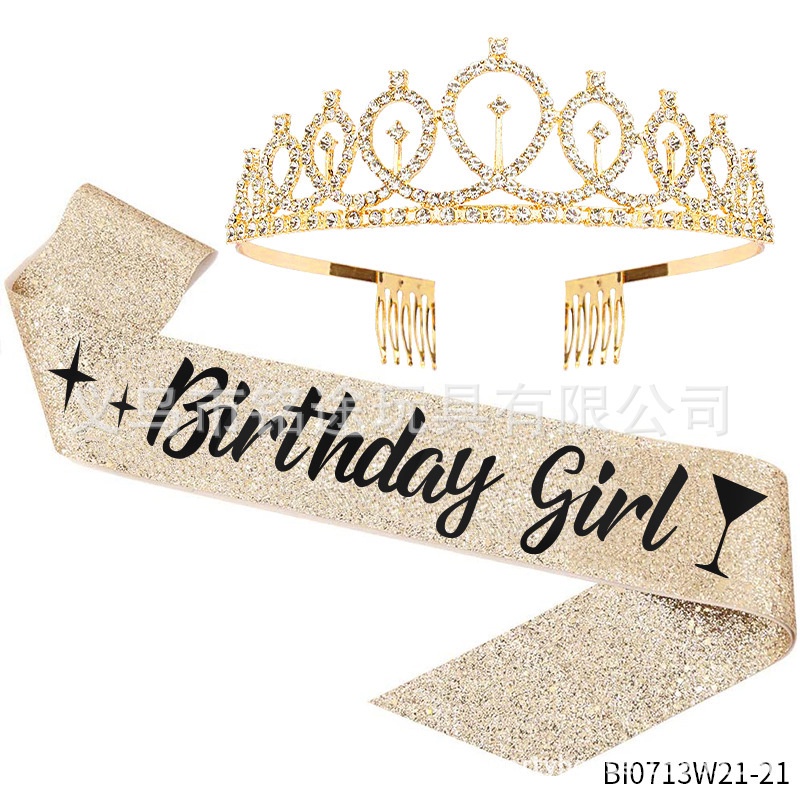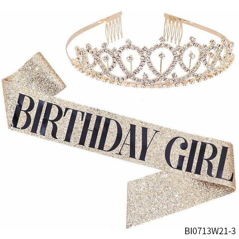 A797 เซ็ทมงกุฎ วันเกิด Happy Birthday Girl สินค้าพร้อมส่งในไทย(T20-5-10 สายสะพาย-10,1เซ็ท)