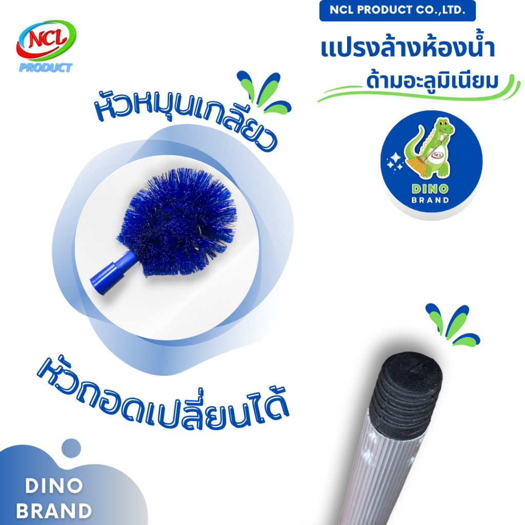 แปรงล้างห้องน้ำ ด้ามอะลูมิเนียม พร้อมส่ง น้ำหนักเบา หัวแปรงสามารถบิดงอได้เพื่อทำความสะอาดได้ดี DINO BRAND