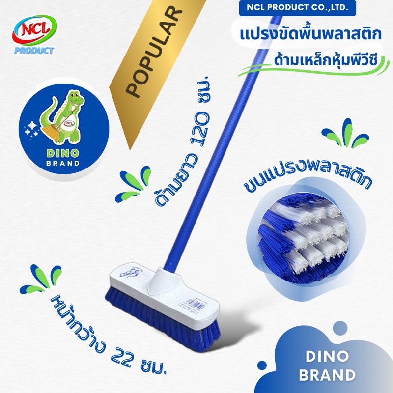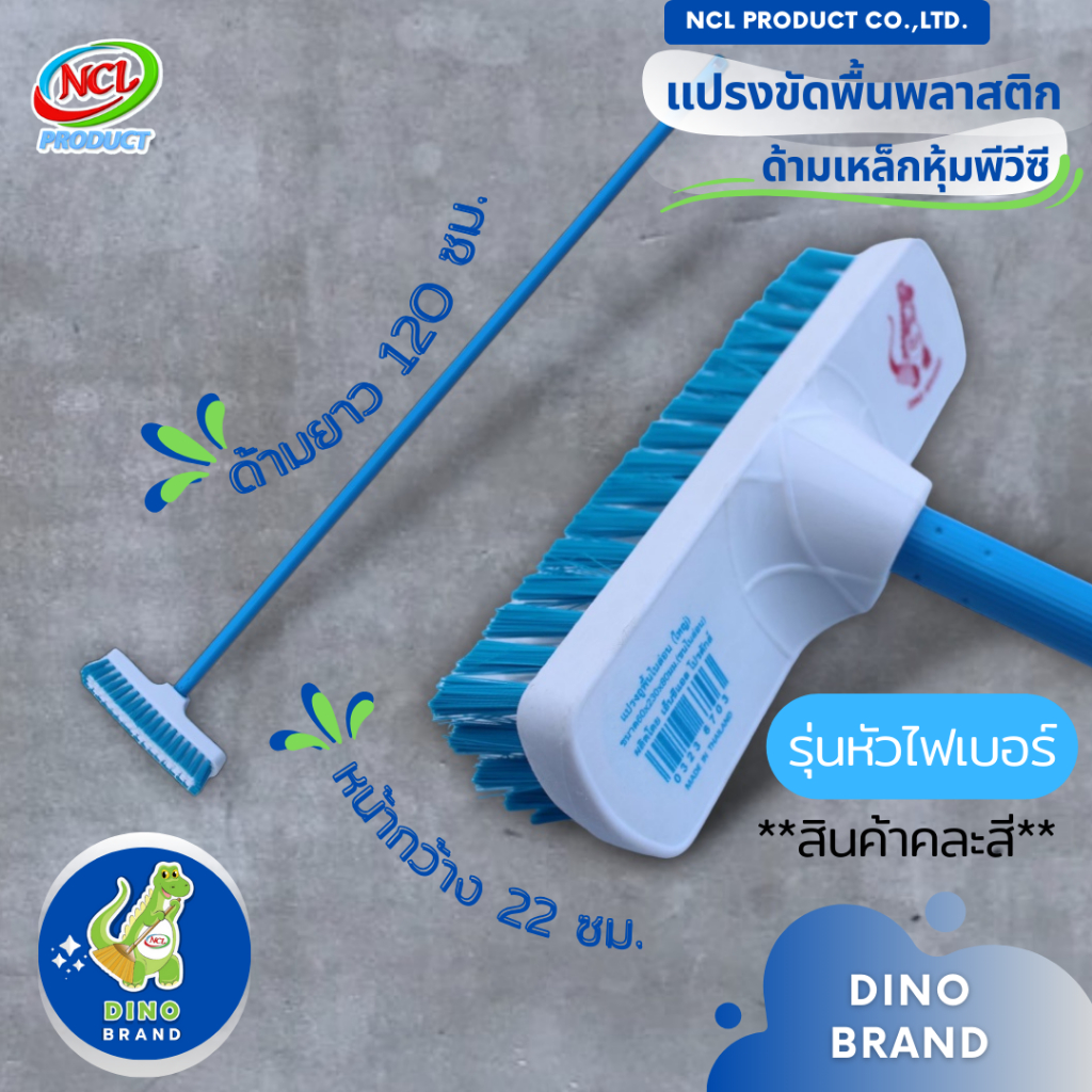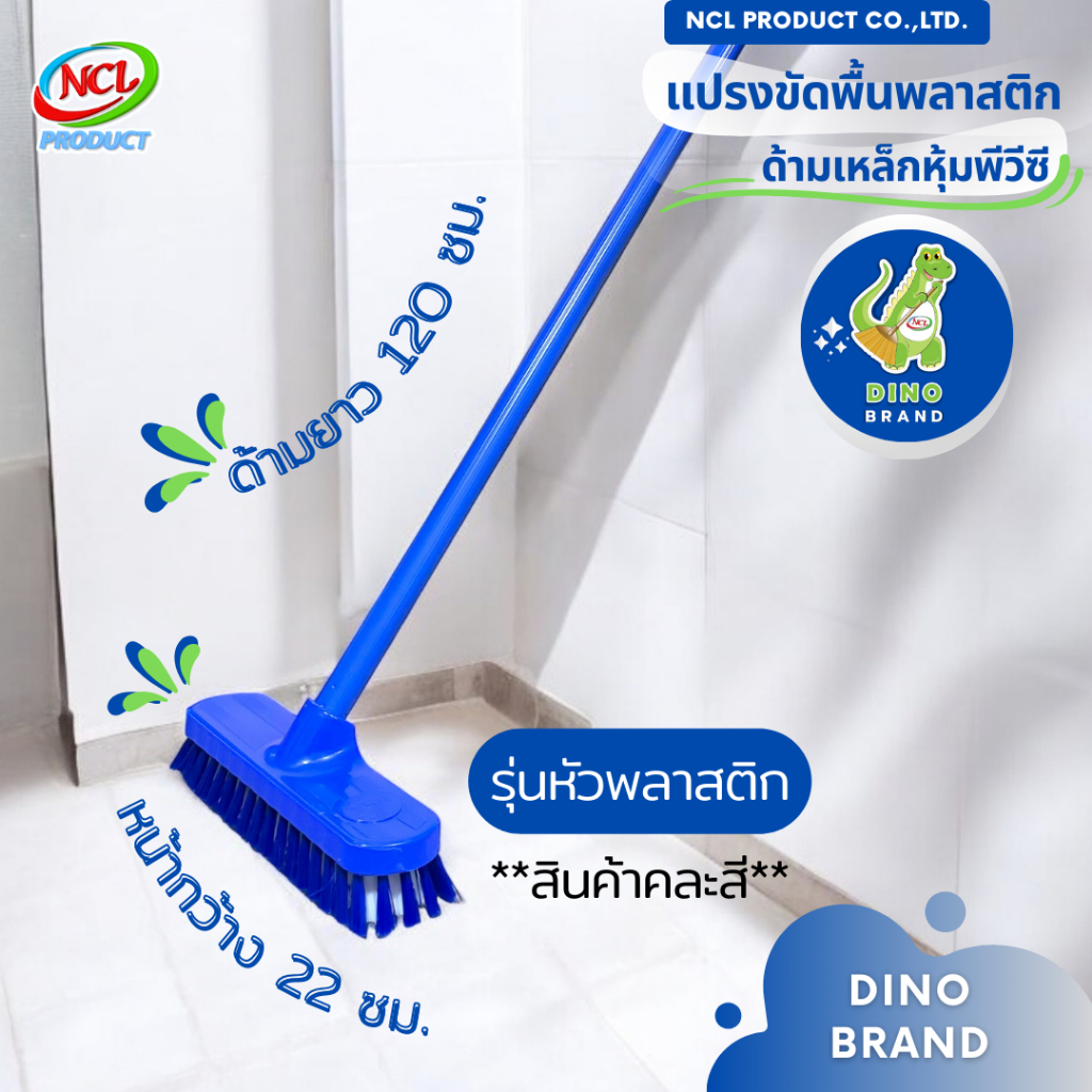 แปรงขัดพื้น ขนแปรงพลาสติก ***สินค้าคละสี*** ด้ามเหล็กหุ้มพีวีซี ยาว 120 ซม. พร้อมส่ง น้ำหนักเบา DINO BRAND