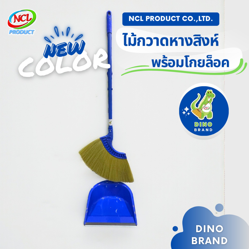 ชุดไม้กวาดพลาสติกหางสิงห์พร้อมโกยล็อค (เส้นใยพลาสติก) พร้อมส่ง เส้นใยไม่ขูดขีดพื้นผิว ไม่หลุดร่วง DINO BRAND