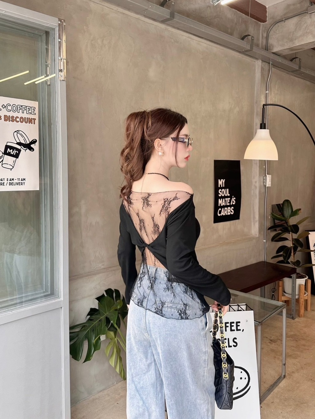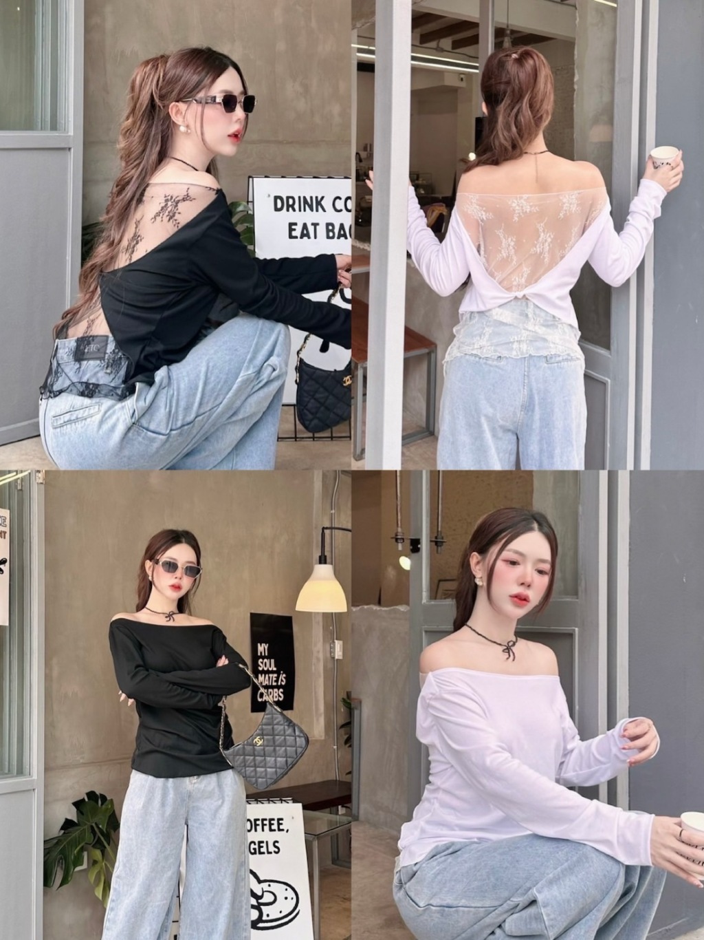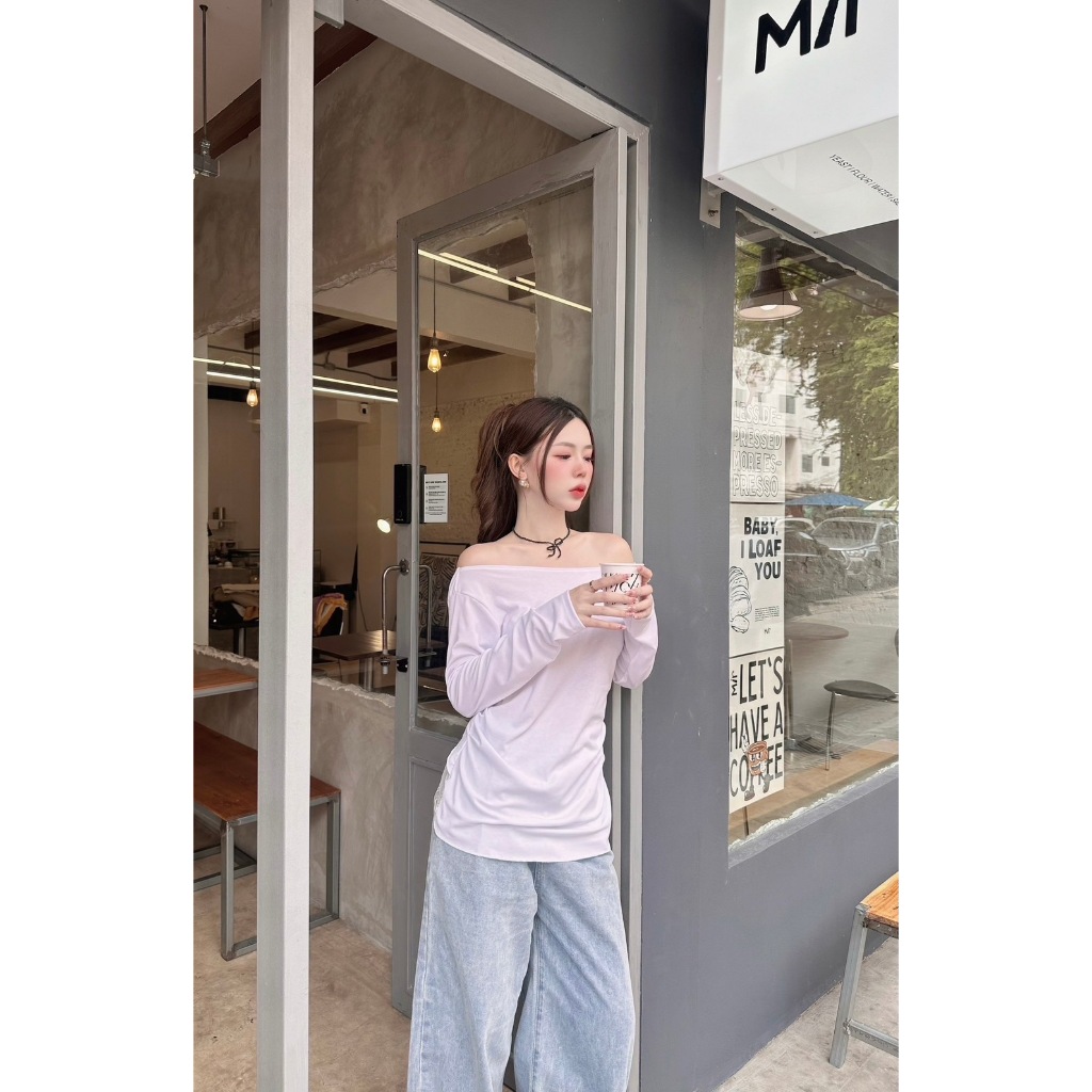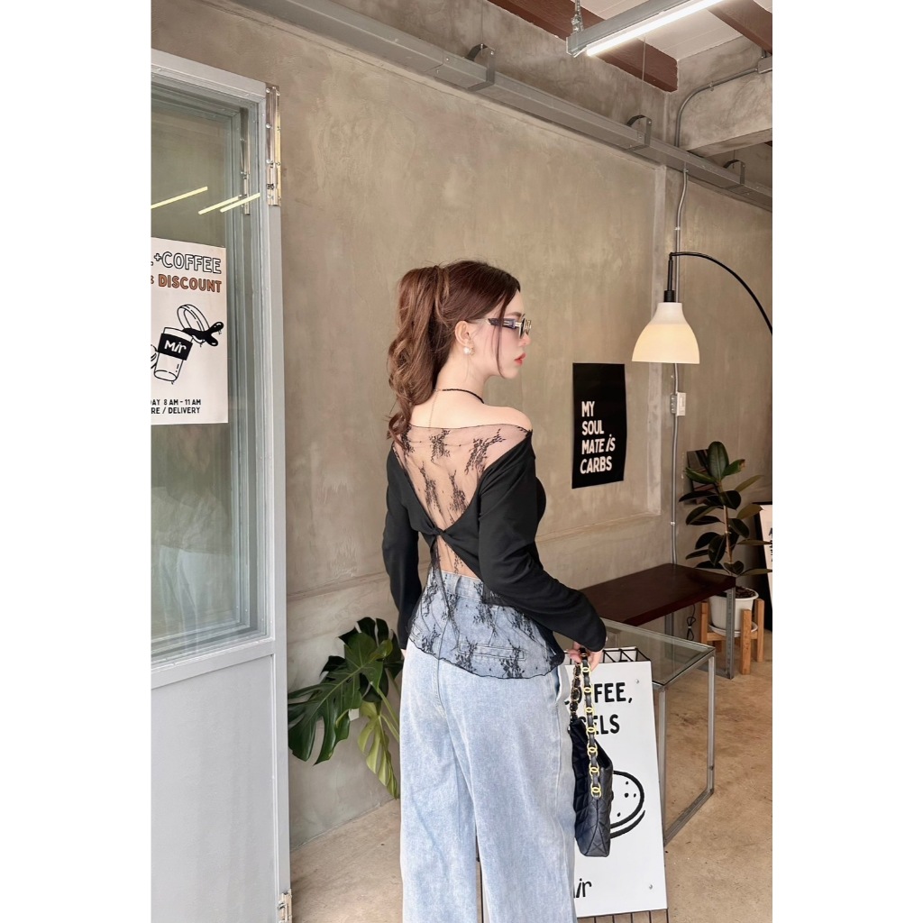 VERA LACE TOP : เสื้อปาดไหล่แขนยาว เสื้อแขนยาวสาวอวบสีขาว น่ารัก แต่งลูกไม้ เซ็กซี่ โชว์หลัง ป้าย Sheeny.
