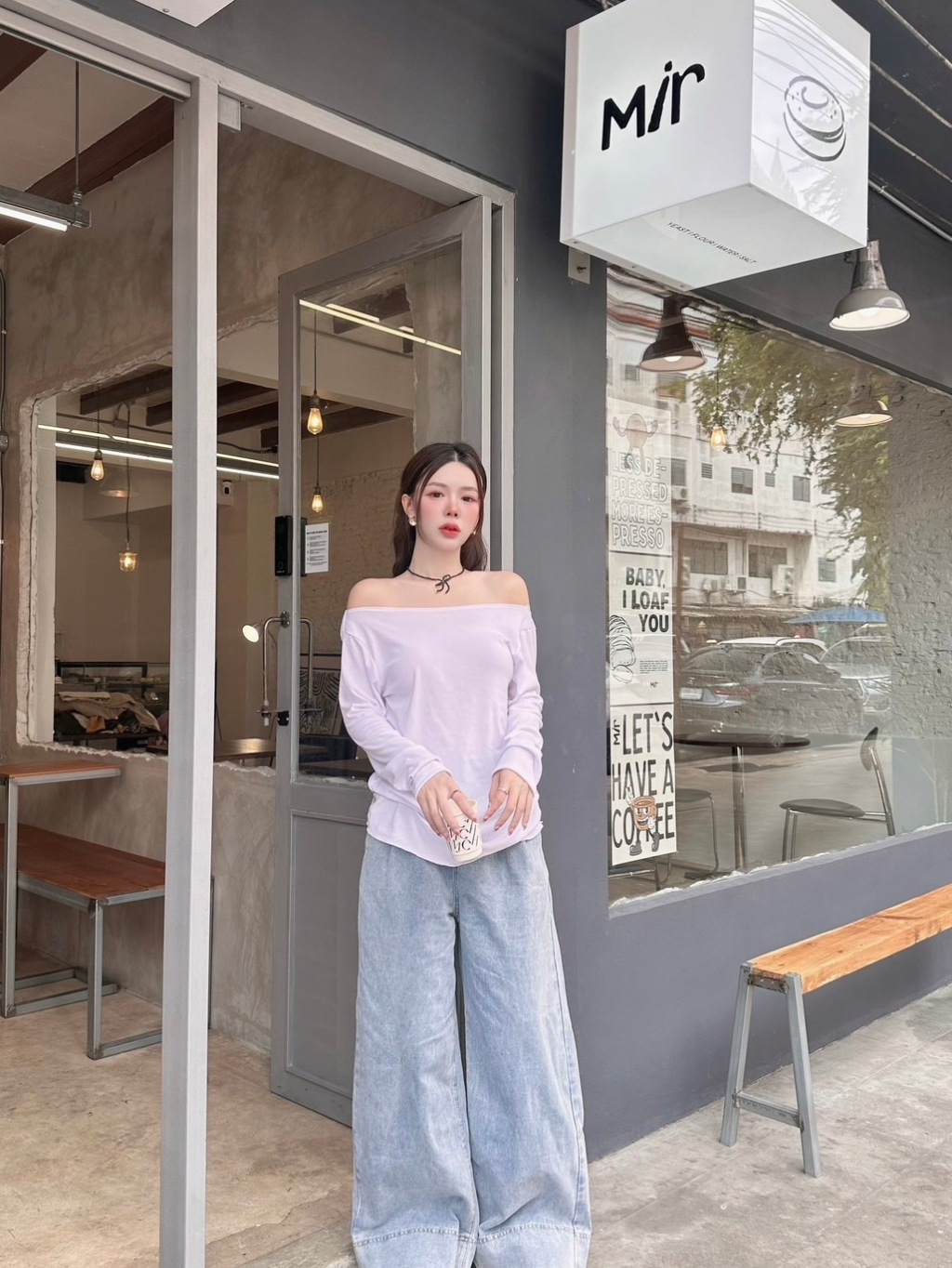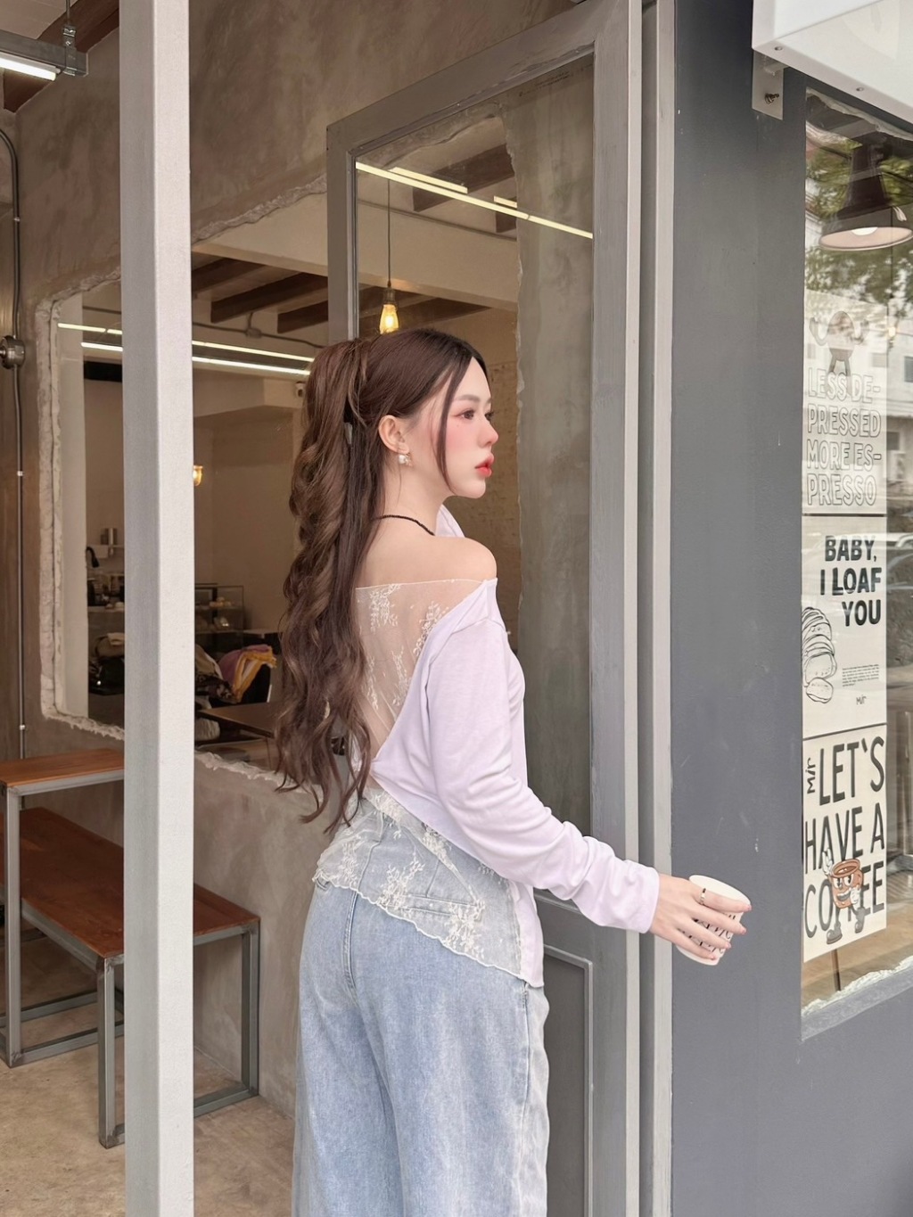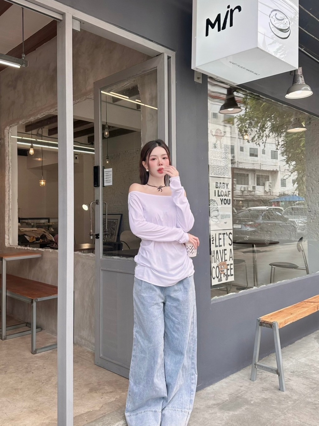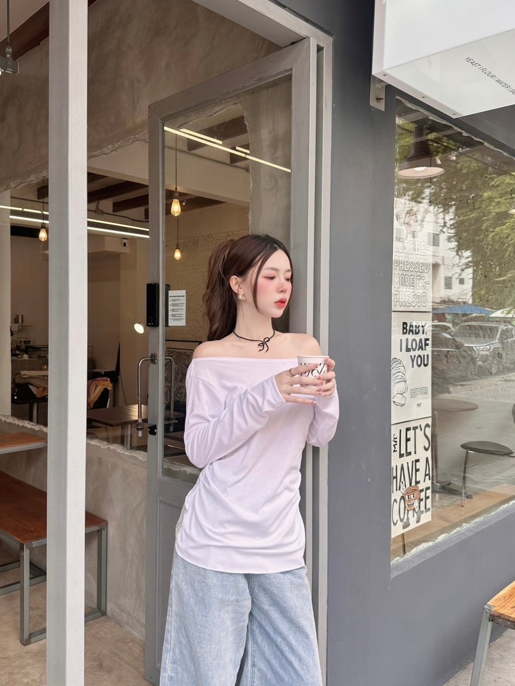 VERA LACE TOP : เสื้อปาดไหล่แขนยาว เสื้อแขนยาวสาวอวบสีขาว น่ารัก แต่งลูกไม้ เซ็กซี่ โชว์หลัง ป้าย Sheeny.
