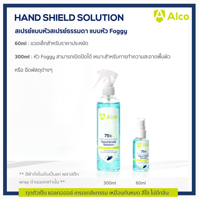 Alco Hand Shield Solution 300ml แอลกอฮอล์สเปรย์แบบน้ำเข้มข้น 75%