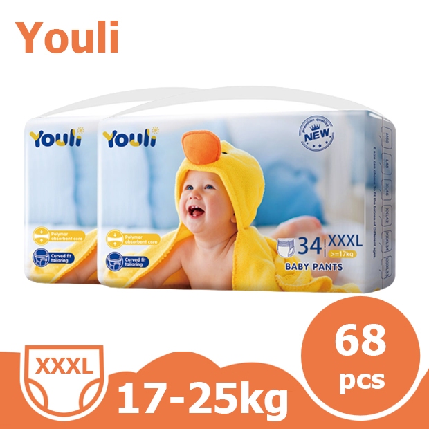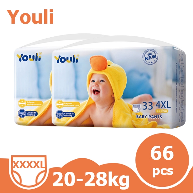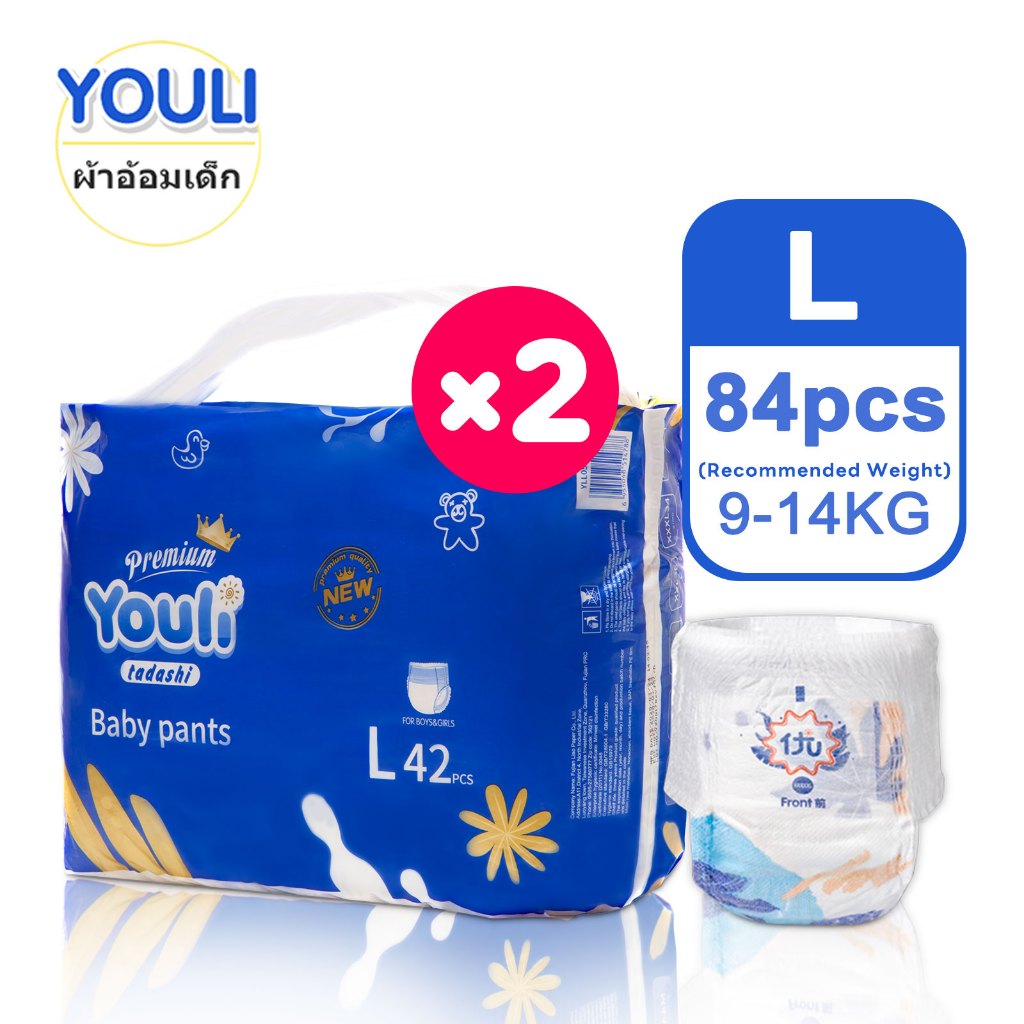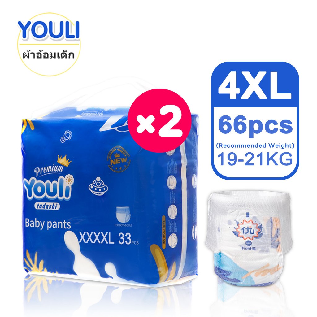 2 ชุดบรรจุใหญ่ YOULI M Size 88 ชิ้น ผ้าอ้อมแบ บเทปและ กางเกง Baby Diapers Pants M-5XL