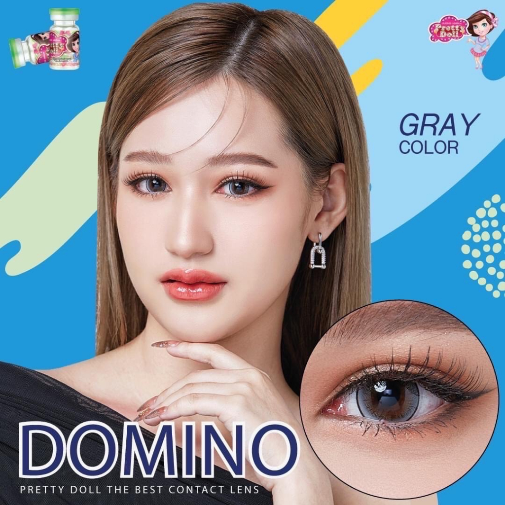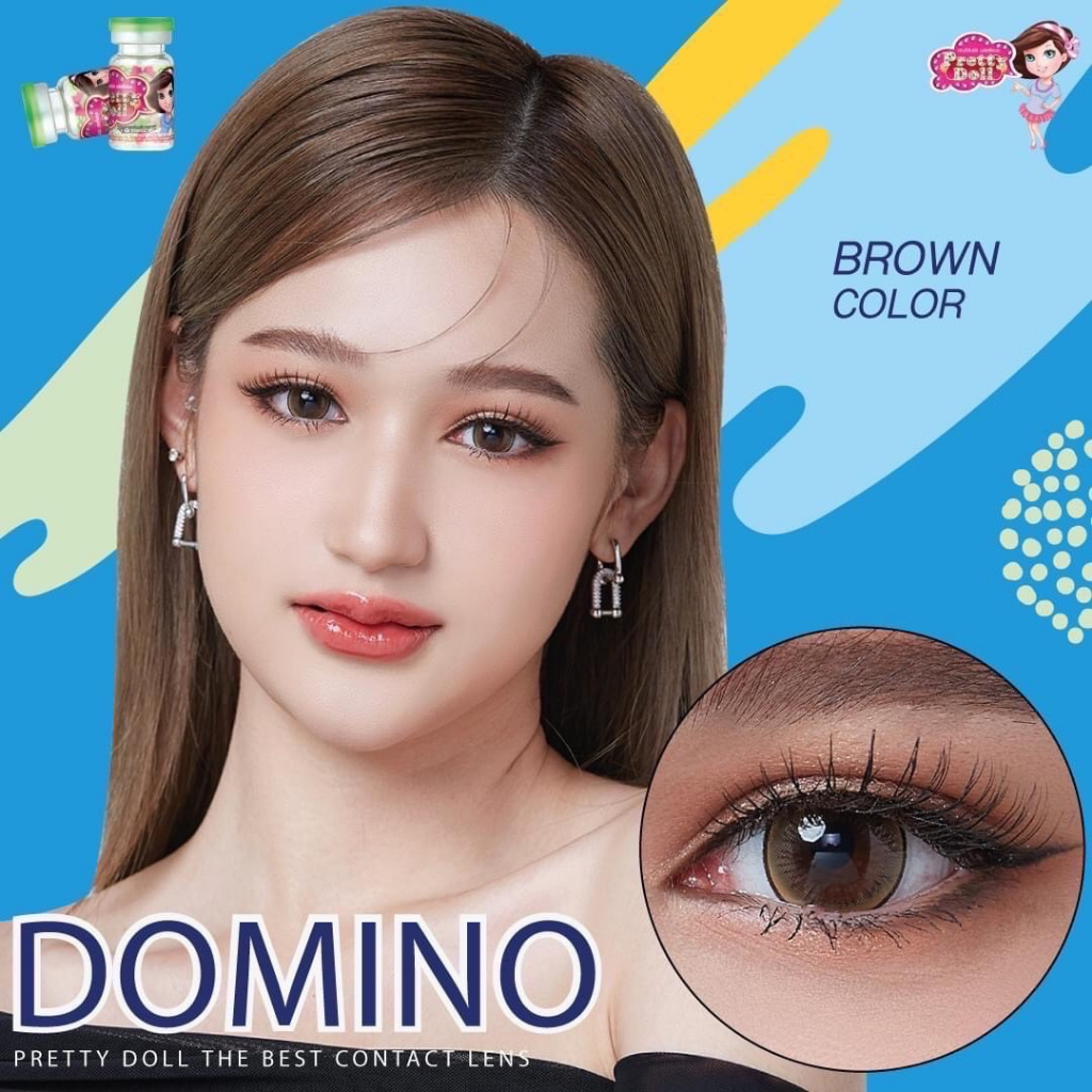 (COD)คอนแทคเลนส์ Contactlens Domino สายตา+ปกติ Prettydoll 0.00 ถึง - 6.00 เลนส์นิ่มใส่สบายตาแถมตลับ
