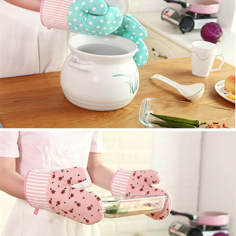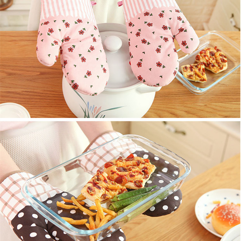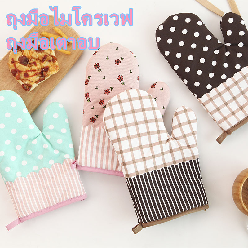 ถุงมือจับความร้อนถุงมือเตาอบทำอาหาร ถุงมือไมโครเวฟ ถุงมือเตาอบ ถุงมือกันร้อน ถุงมืออบขนม ถุงมือผ้าฝ้ายแบบหนา