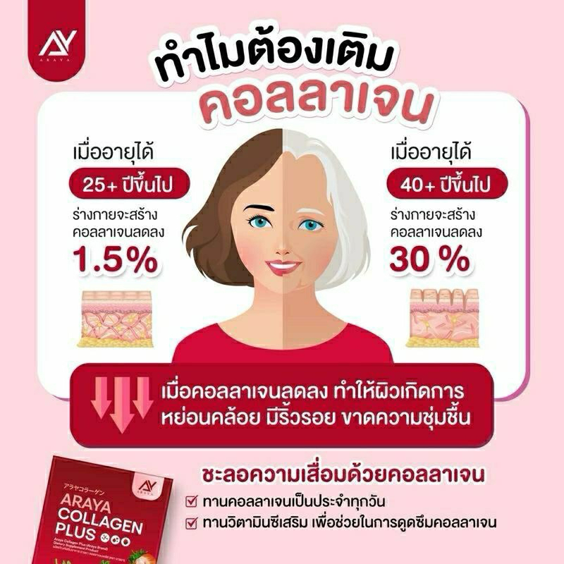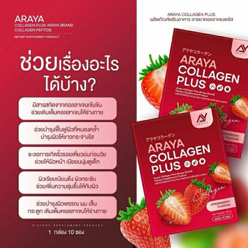 (ราคาต่อกล่อง) อารยา คอลลาเจน พลัส Araya Collagen สูตรใหม่รสสตอเบอรี่