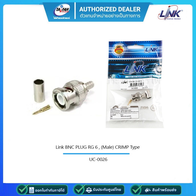 LINK UC-0026 หัวต่อสาย Coaxial BNC Plug RG6 แบบย้ำ ตัวผู้ 5C-2V Crimp Type Link