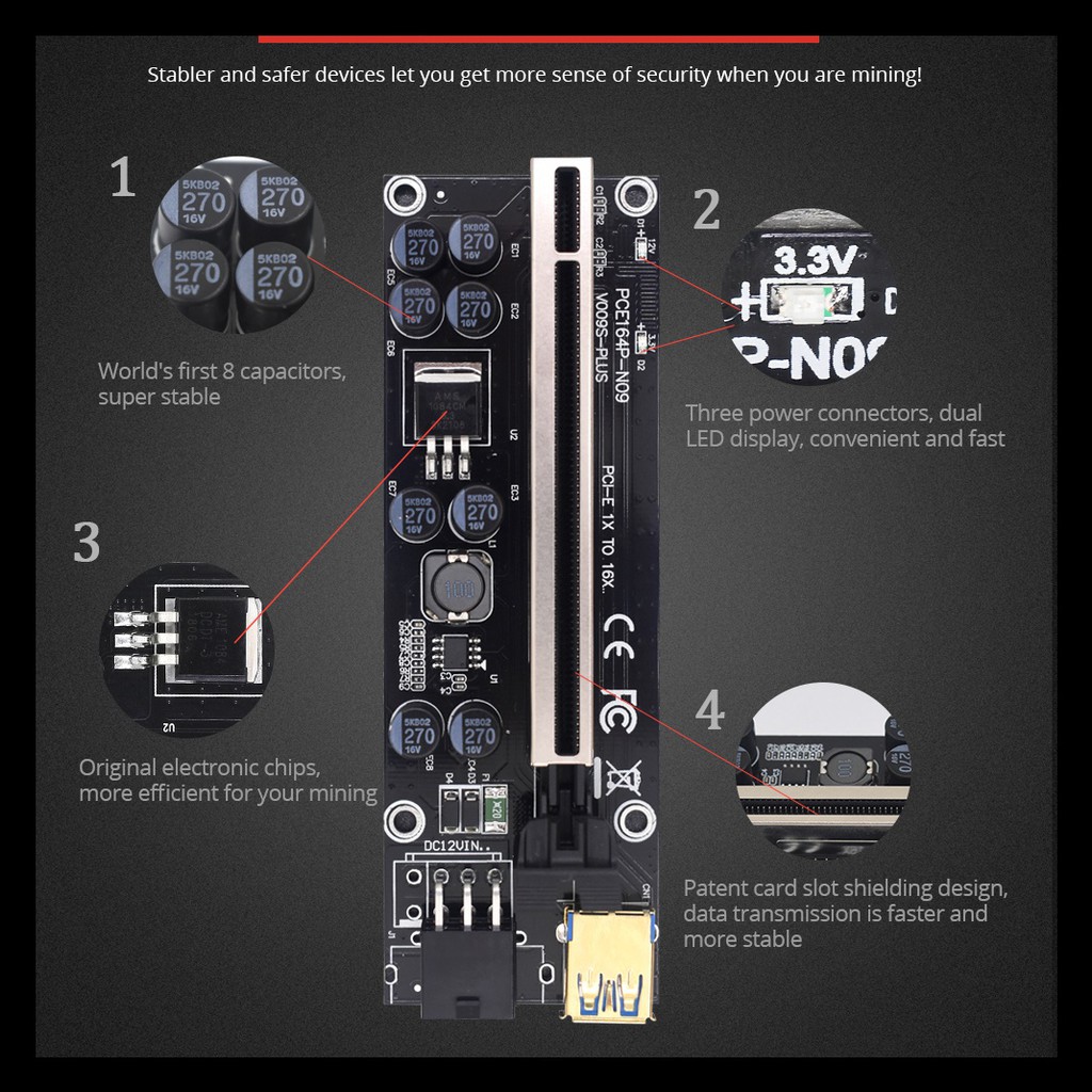 Riser 009s Plus 8 cap สายไรเซอร์ Pci-e riser 1x to 16x Pci Express riser card riser for bitcoin rizer