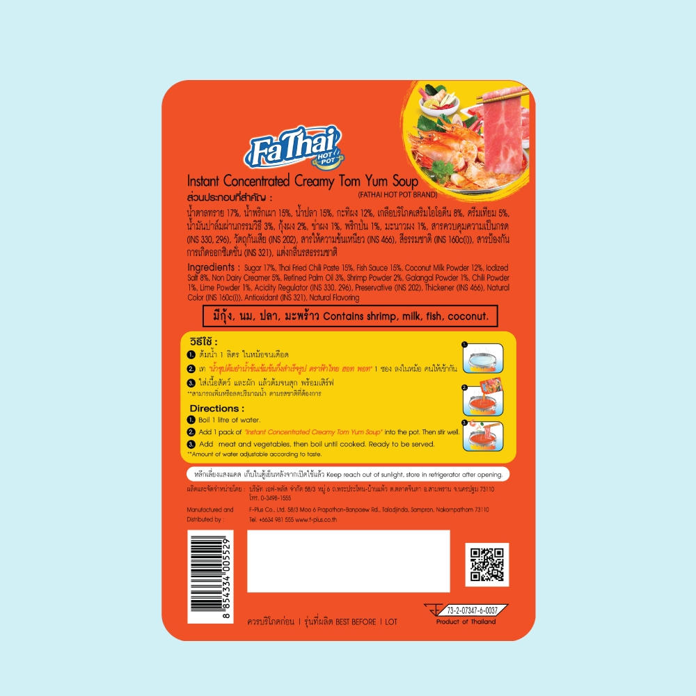 FaThai ฟ้าไทย ฮอทพอท น้ำซุปต้มยำเข้มข้น 120 มล. (ลัง 24 ซอง)