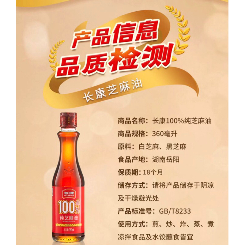 A31น้ำมันงา พร้อมส่ง(长康芝麻油) ขนาด 200ml
