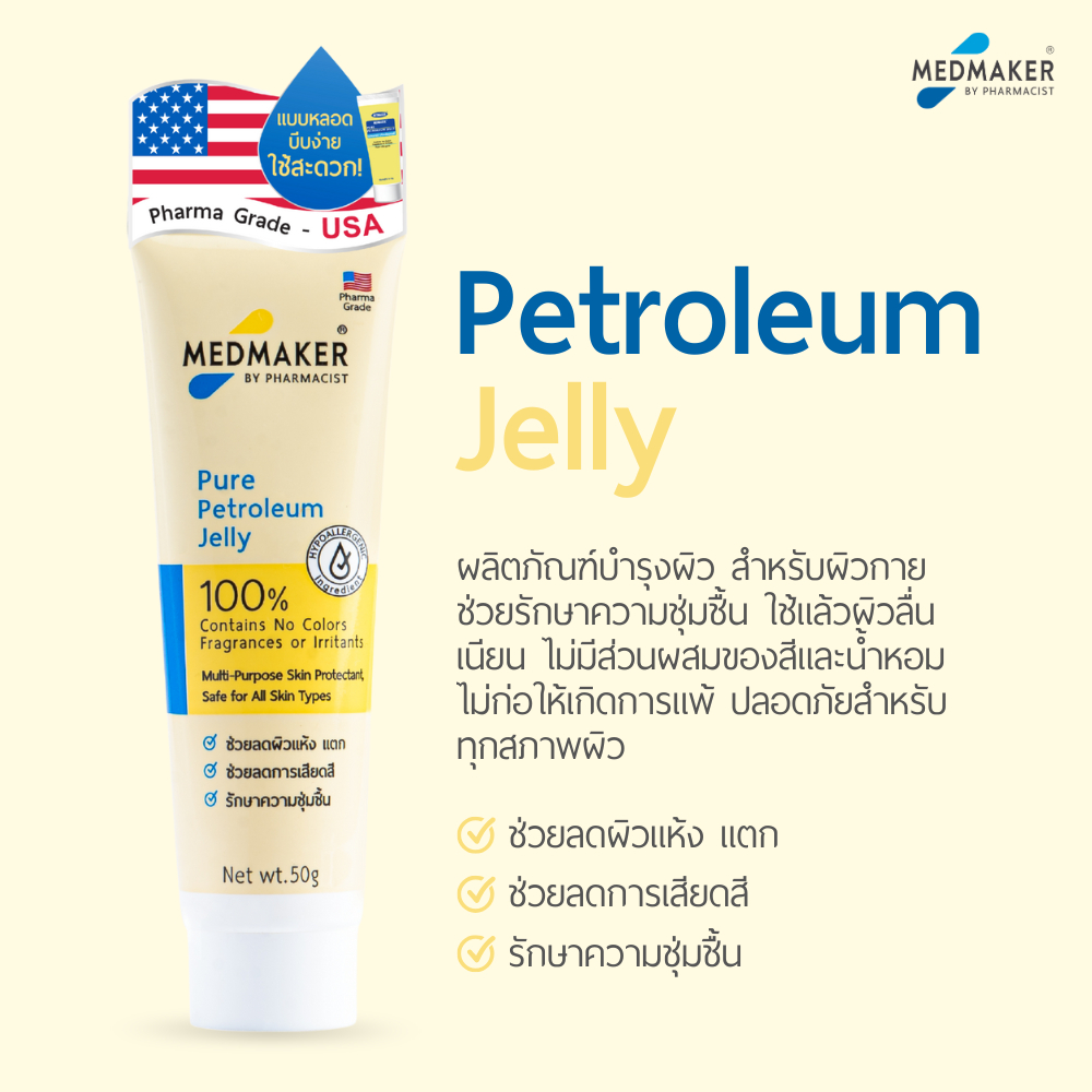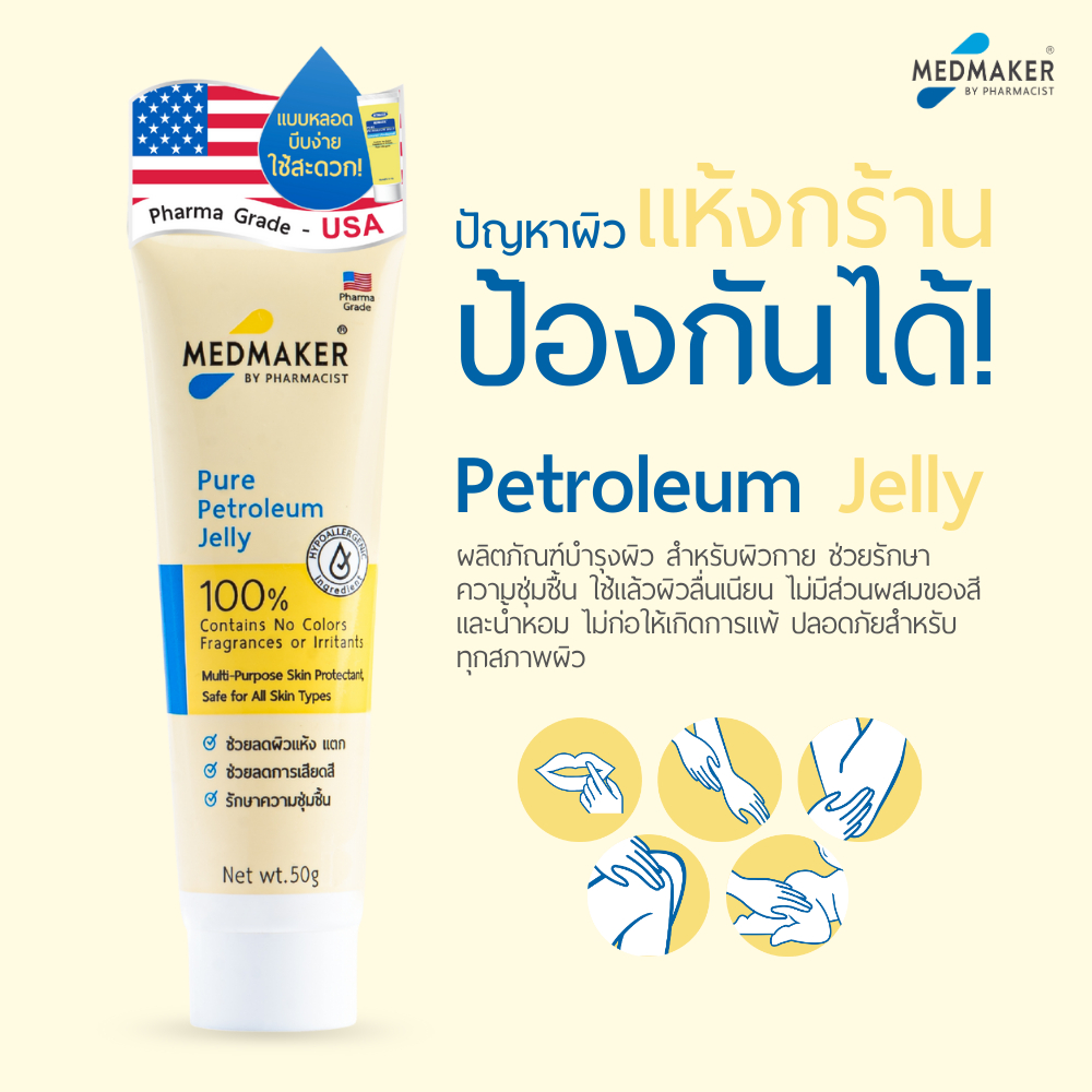 MEDMAKER Petroleum Jelly 50g. เมดเมเกอร์ ปิโตรเลียม เจลลี่ 2 แบบ กระปุก /หลอด
