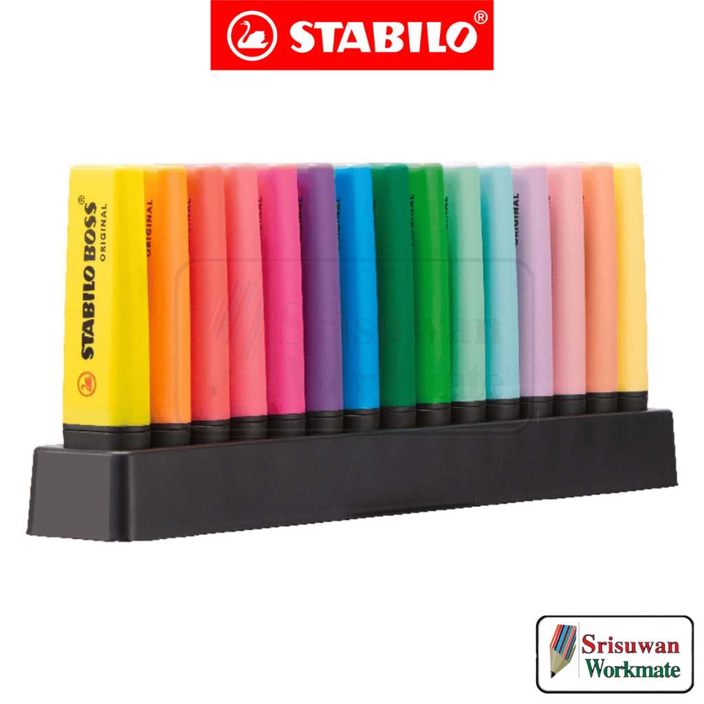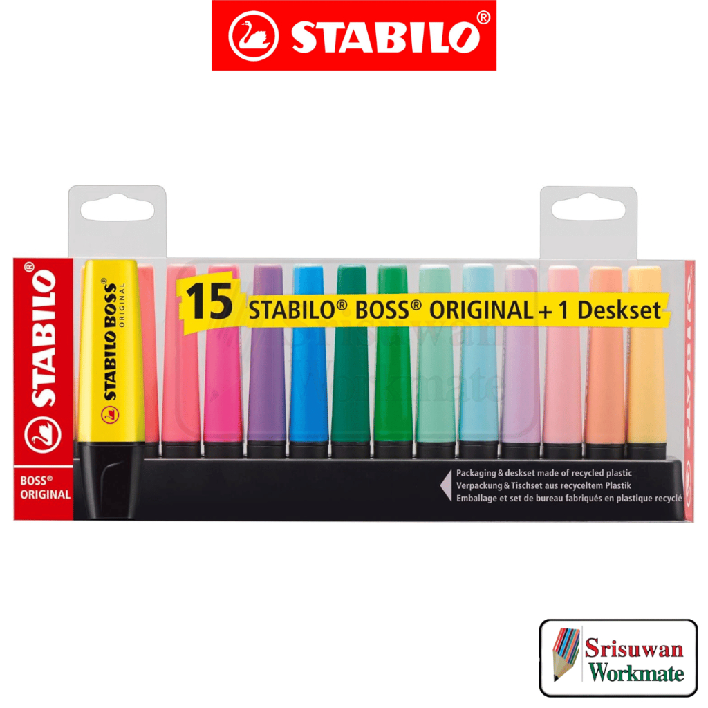 Stabilo 7015-01-5 Boss Original Desk Set 15 สี ปากกาเน้นข้อความ พร้อมแท่นวาง ไฮไลท์ สีนีออน สีพาสเทล สตาร์บิโล