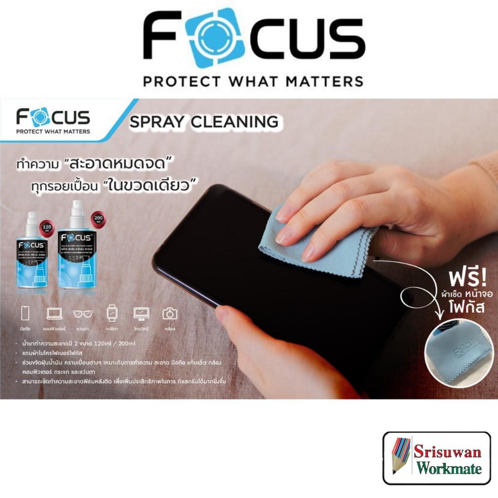 FOCUS น้ำยาเช็ดหน้าจอ 120ml. / 200ml. Screeen Cleaning Spray สเปรย์ทำความสะอาดหน้าจอ เลนส์ แว่นตา กล้อง นาฬิกา