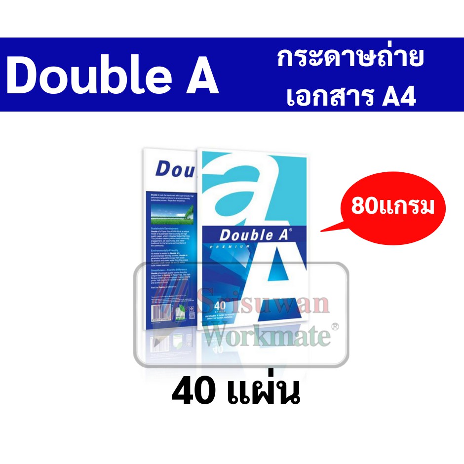 Double A กระดาษถ่ายเอกสาร A4 หนา 80 / 90 แกรม บรรจุ 40 / 100 กระดาษถ่ายเอกสารAA กระดาษดับเบิ้ลเอ กระถ่ายเอกสารสีขาว เอ4