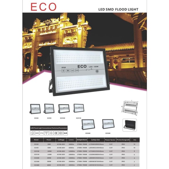 สปอร์ตไลท์ Floodlight LED 400W รุ่น ECO ประหยัดไฟแต่ไม่ประหยัดแสง