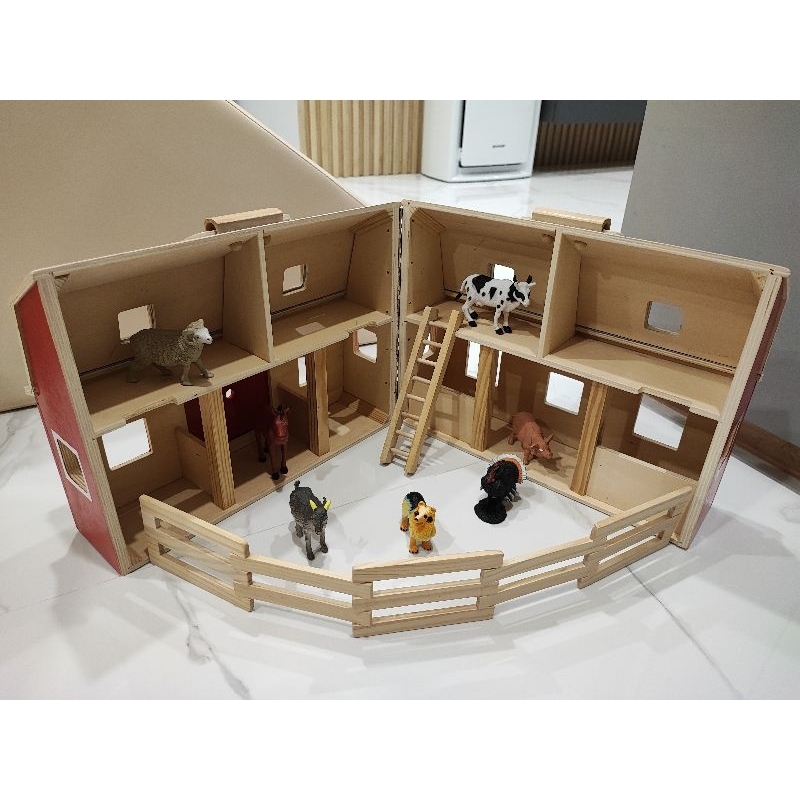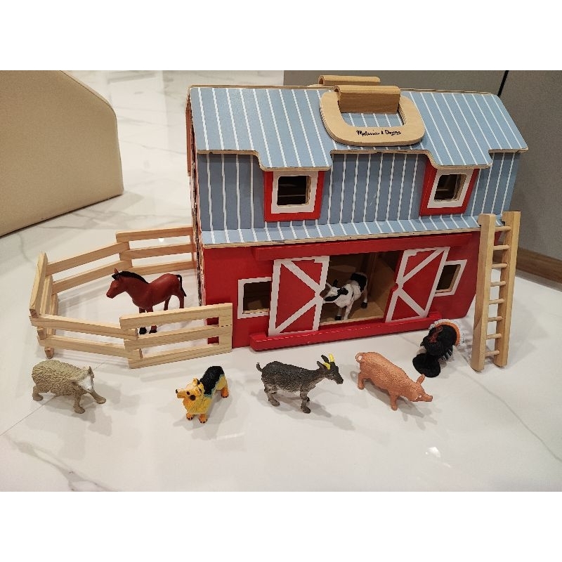 Melissa & Doug Fold and Go Wooden Barn พร้อมสัตว์เล่น 7 ตัว