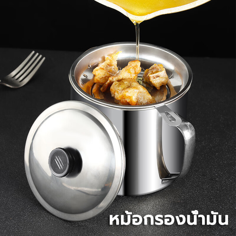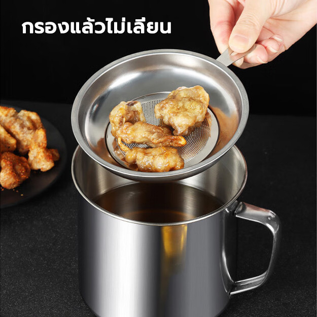 1.3ลิตร หม้อกรองน้ำมัน หม้อสำหรับกรองน้ำมัน ที่เก็บน้ำมัน สแตนเลส หม้อกรอง ตะแกรงกรอง