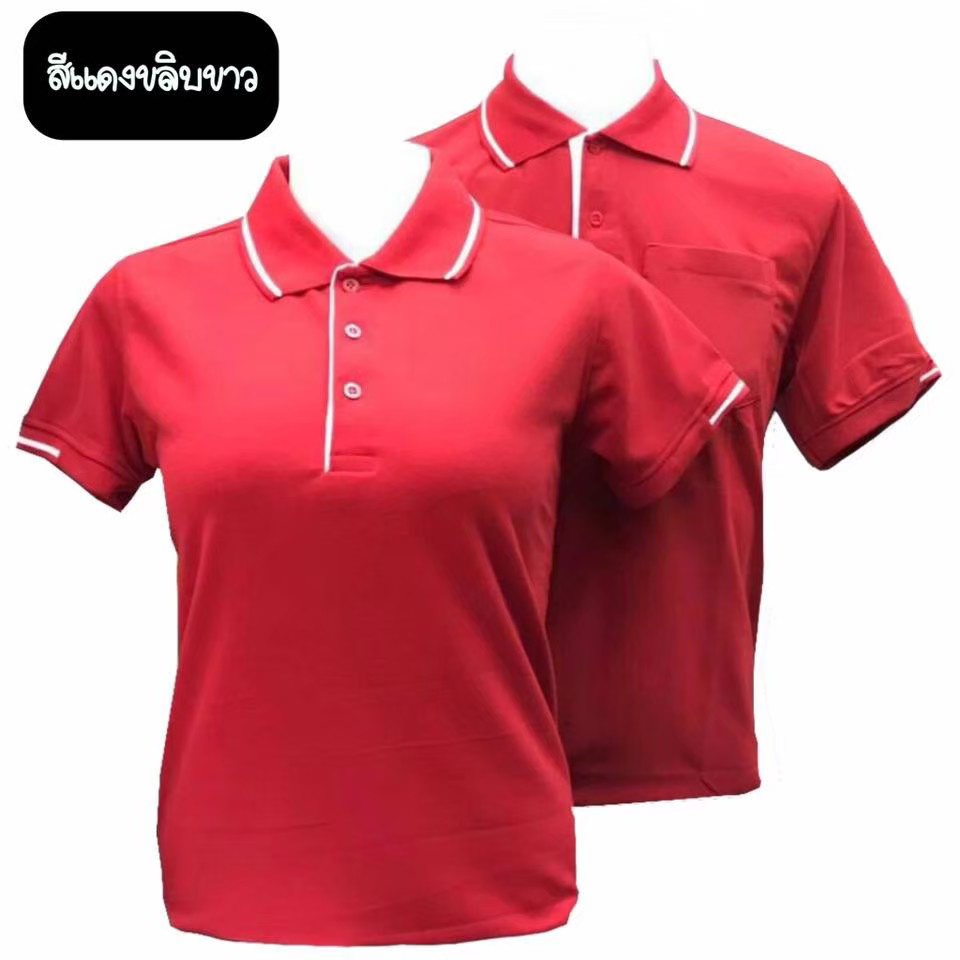 เสื้อโปโล สีแดง ขลิบขาว เนื้อผ้า TK มีไซส์ชายหญิง