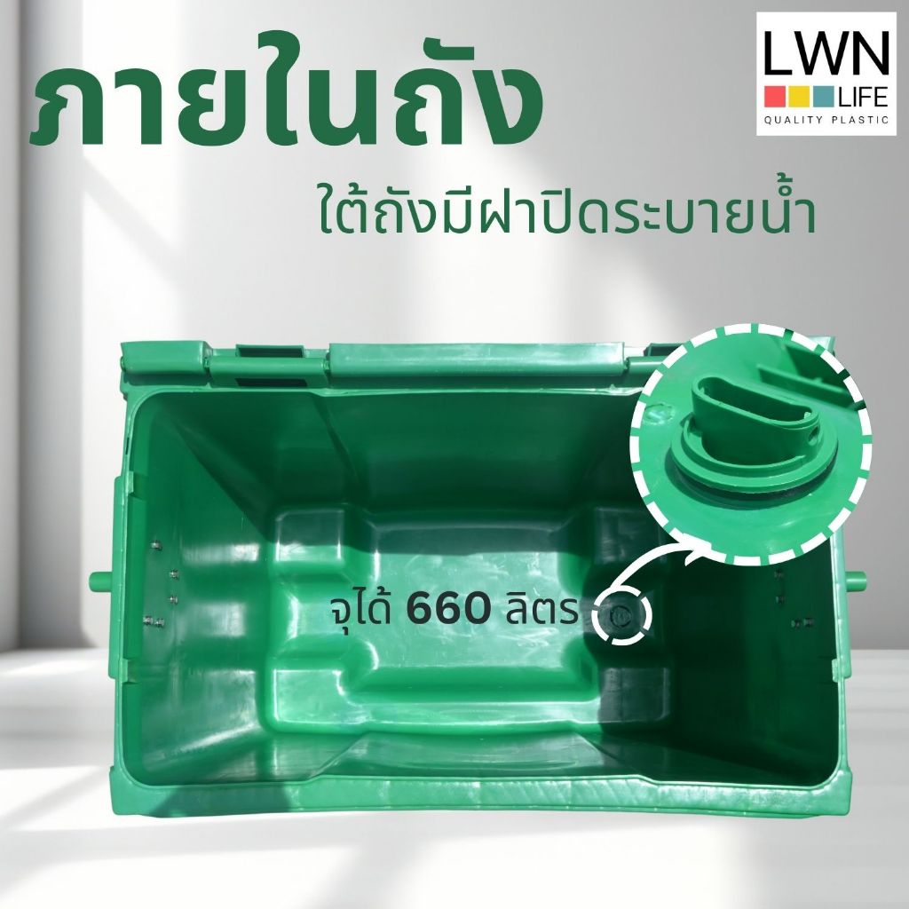 ถังขยะ 660 ลิตร (อย่างหนา) ถังขยะเทศบาล สีเขียว ของแท้แบรนด์ LWN Life