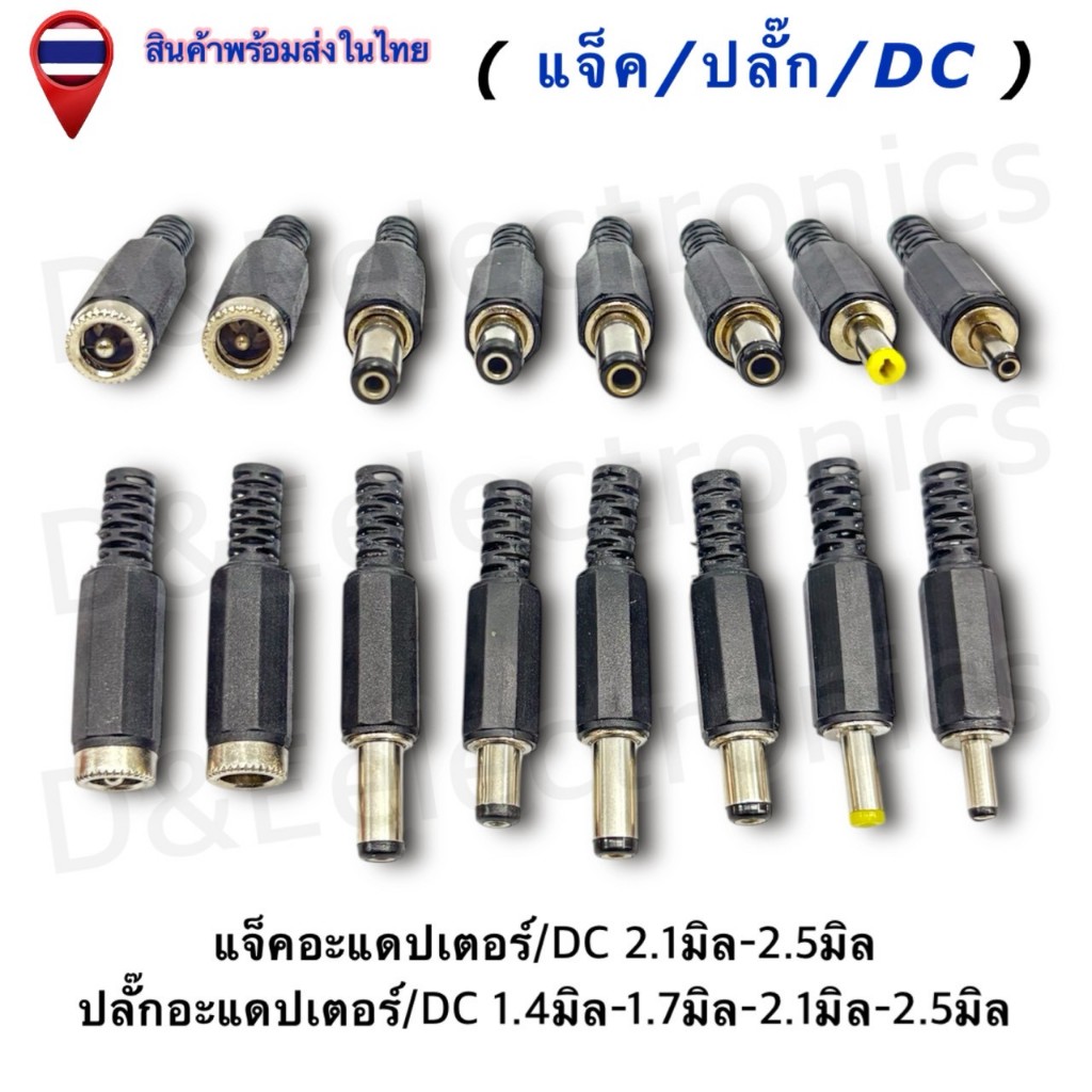 DC Power Plug Jack Adapter แจ็ค/ปลั๊ก/DC ตัวผู้ 1.4-1.7-2.1-2.5มิล / ตัวเมีย 2.1-2.5มิล (ครบทุกขนาด)