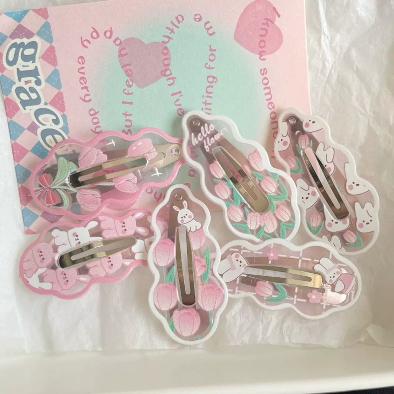 กิ๊บแฟชั่น กิ๊บเปาะแปะลวดลายดอกไม้แบบใส 1 ชิ้น
