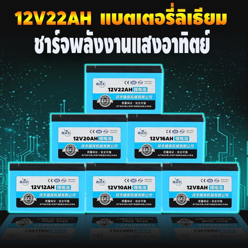 แบตเตอรี่ลิเธียม แบตเตอรี่ 12V22AH น้ำหนักเบา ใช้งานได้หลากหลาย UPS ไฟฉุกเฉิน เครื่องมือเกษตร แบตเตอรี่เครื่องพ่นสารเคมี