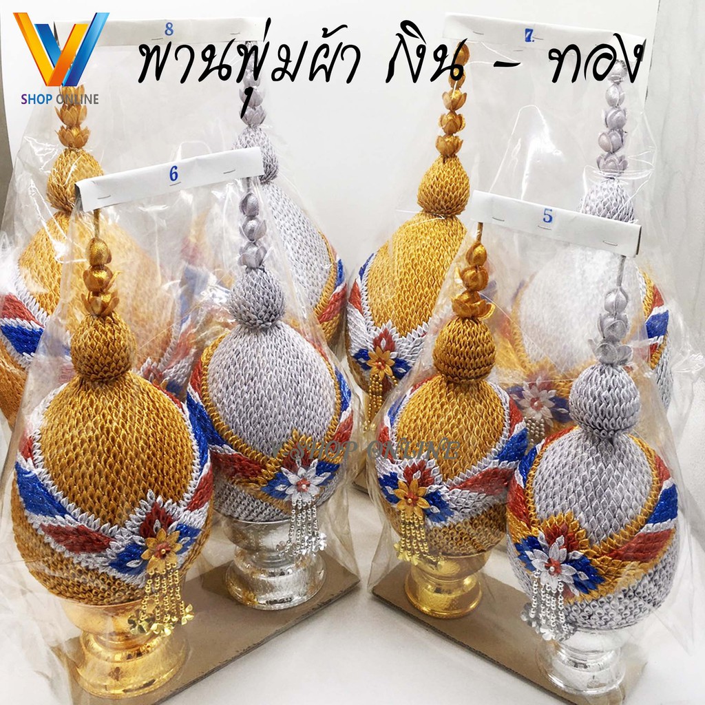 พานพุ่มเงินทอง พุ่มผ้า เบอร์6 พุ่มเงินพุ่มทอง (ราคา/1คู่)