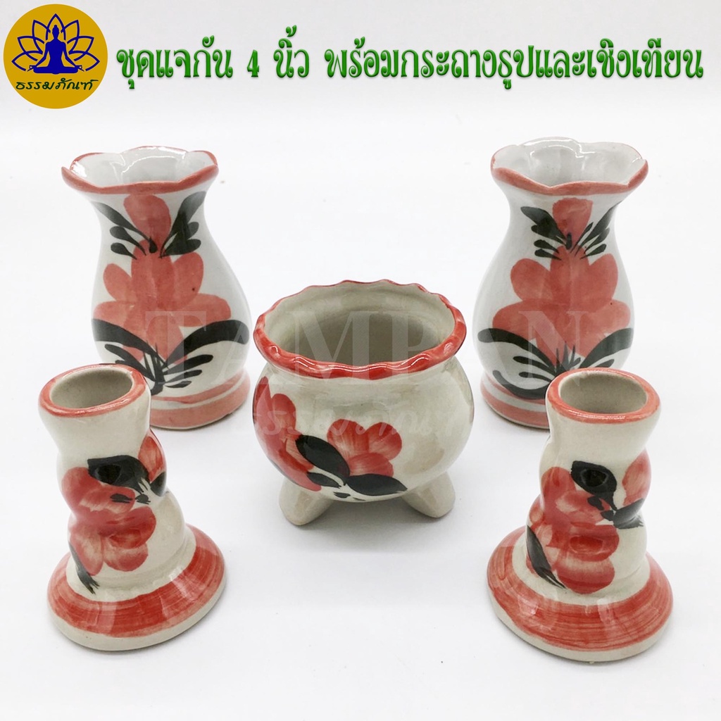 แจกัน กระถางธูป เชิงเทียน เซรามิค (แบบแยก) แจกันดอกไม้ บูชาพระ แจกัน4นิ้ว แจกันกระถางธูป เชิงเทียน