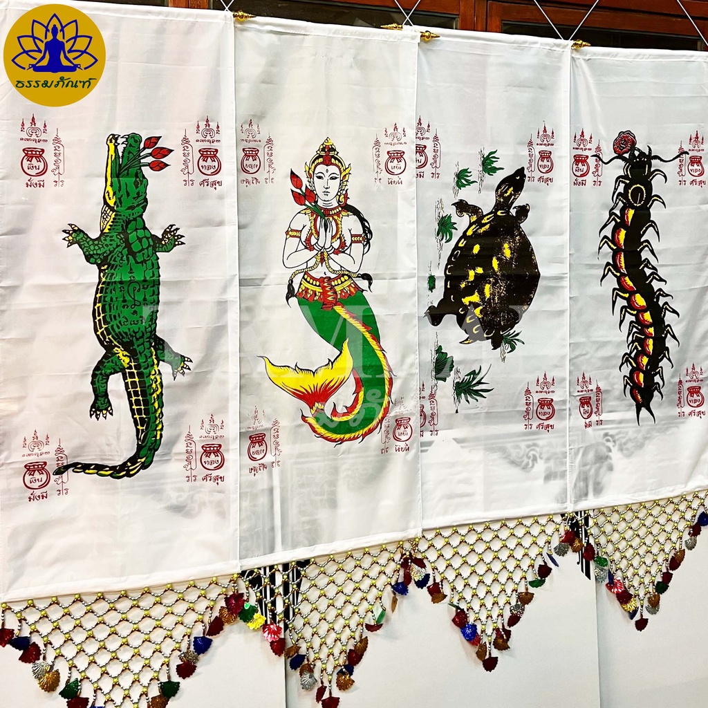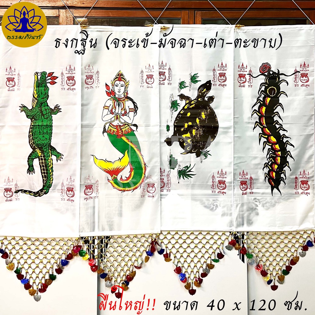 ธงกฐิน ผืนใหญ่ ธงกฐิน ‼️1ชุด( 4 ผืน)👉 ธงจระเข้ ธงมัจฉา ธงเต่า ธงตะขาบ ประดับลูกปัด สวยงาม