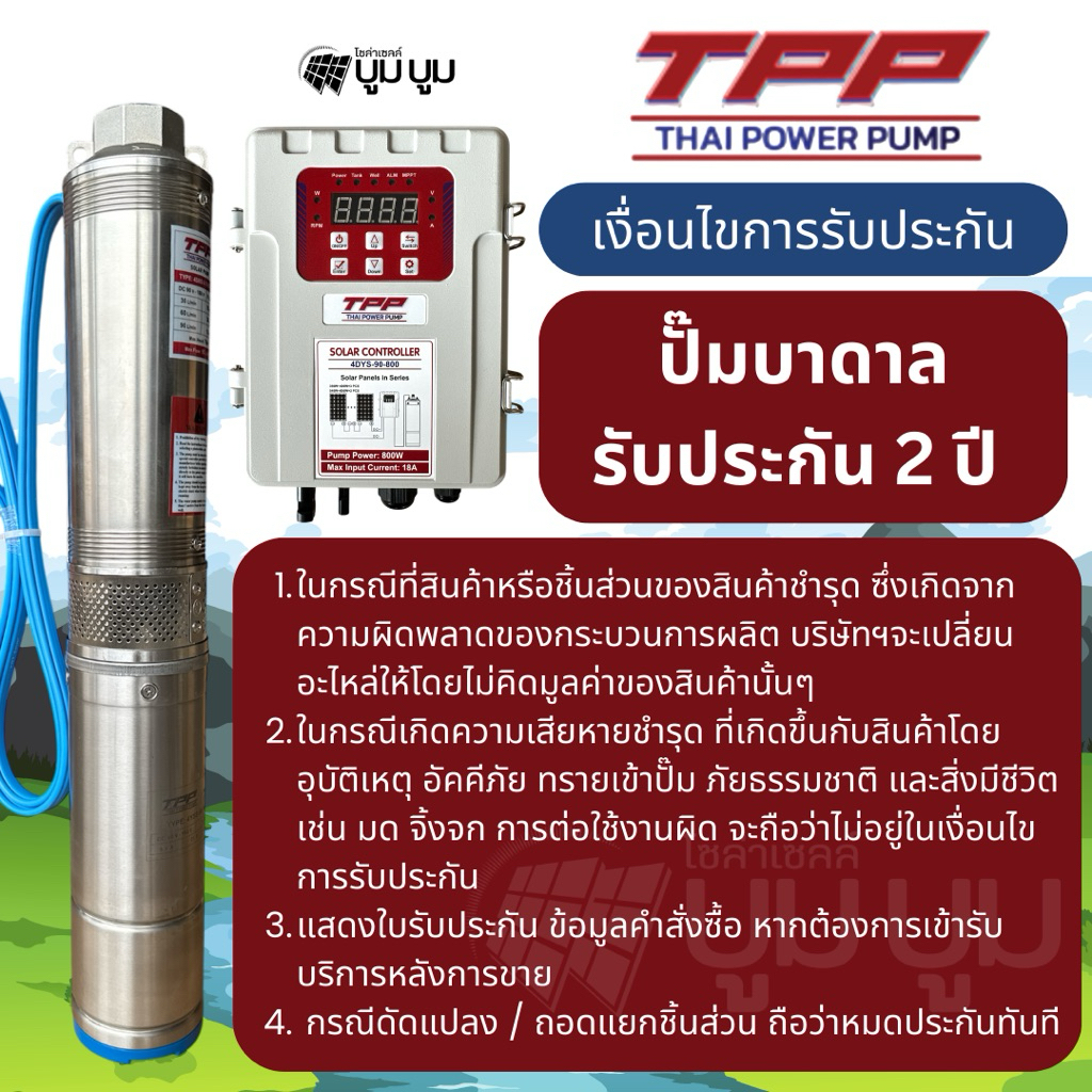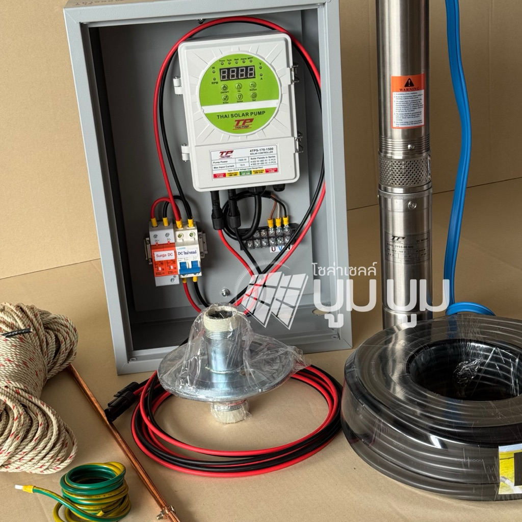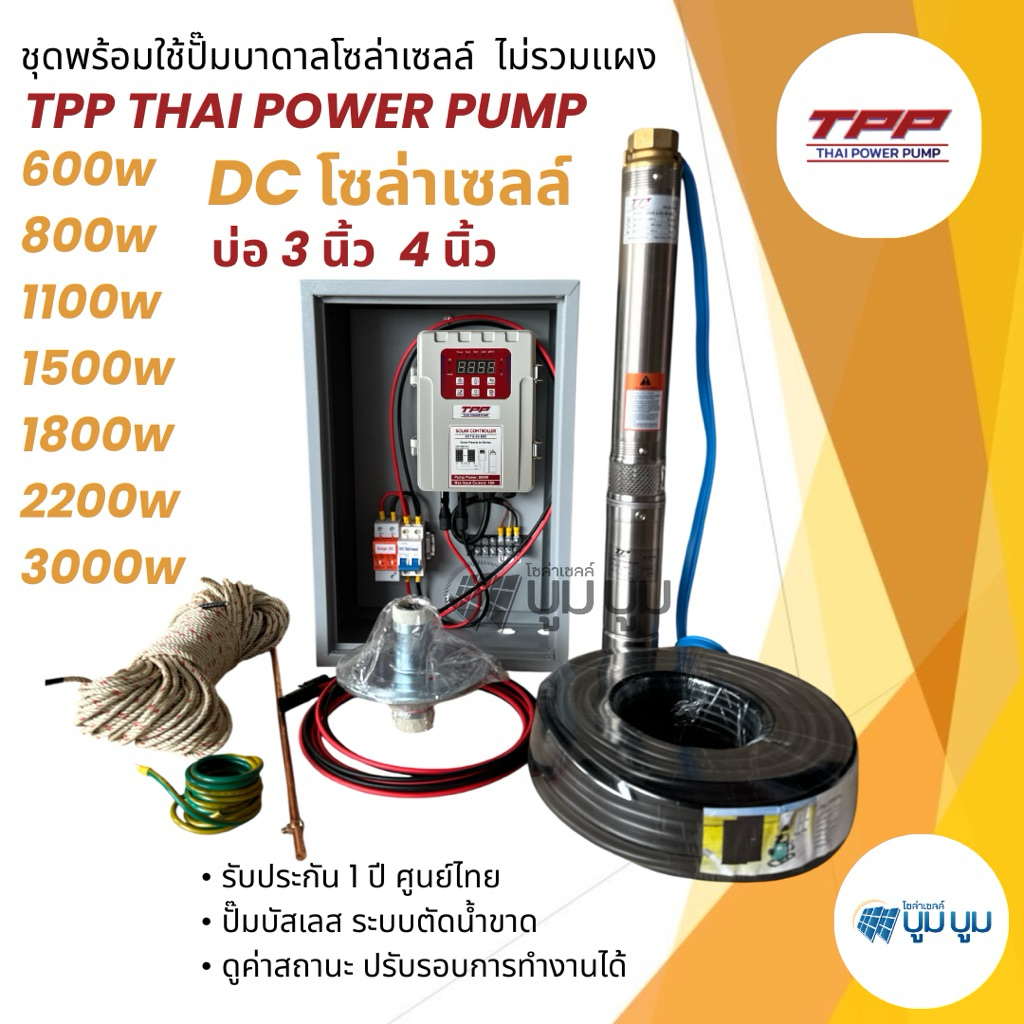 ชุดพร้อมใช้ปั๊มน้ำบาดาลโซล่าเซลล์ TPP DC 600w 800w 1100w 1500w 1800w 2200w 3000w Thai power pump